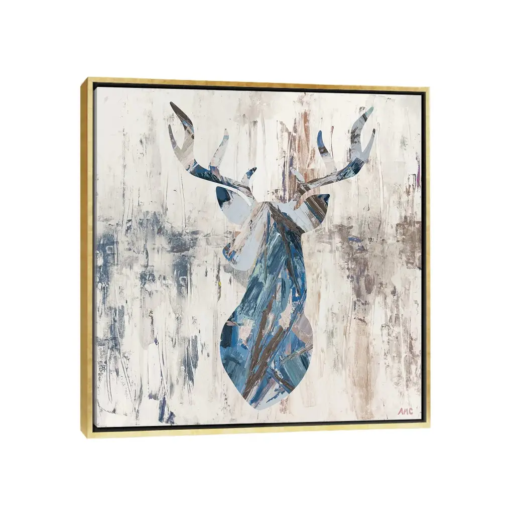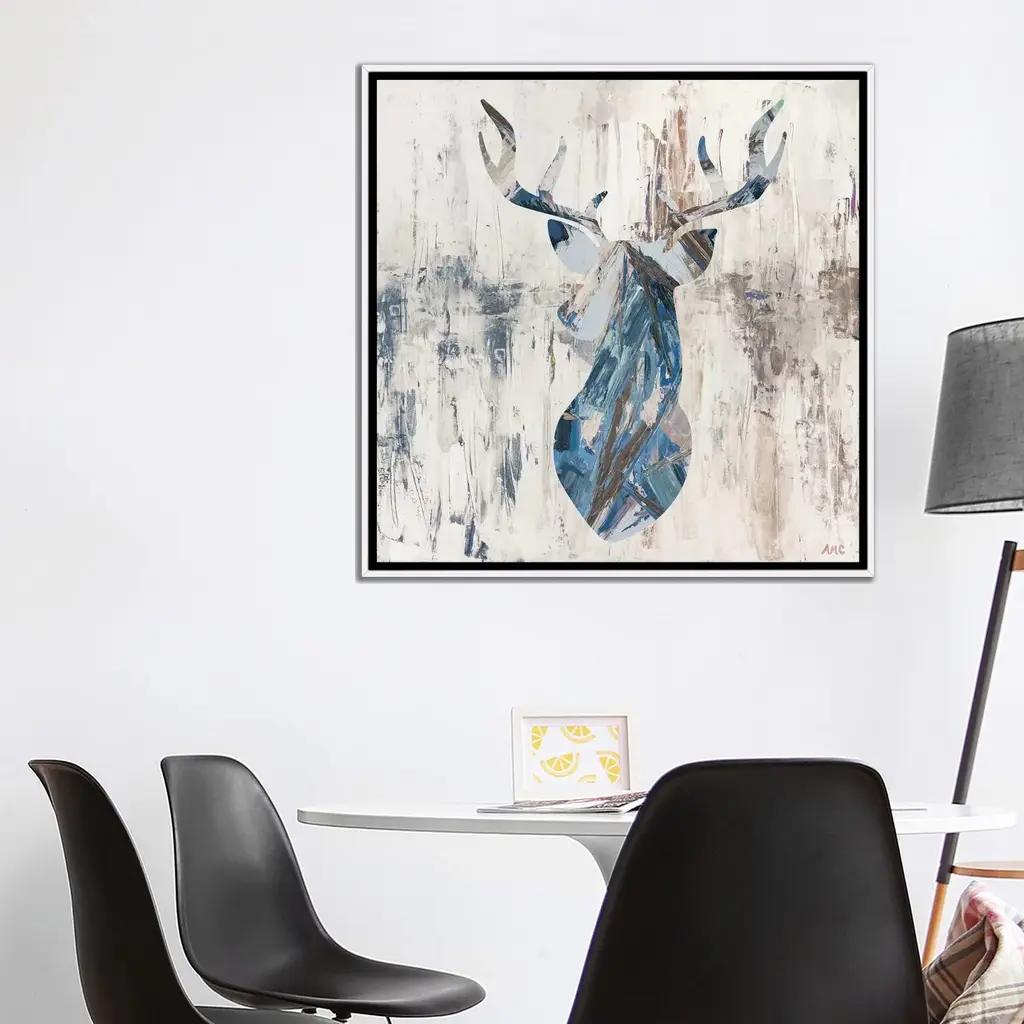 Icanvas "Blue Rhizome Deer Bust" By Ann Marie Coolick Framed Canvas Print - White - 12x12