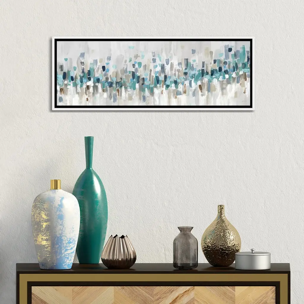 Icanvas "Blue Staccato" By Katrina Craven Framed Canvas Print - 12x36 - White