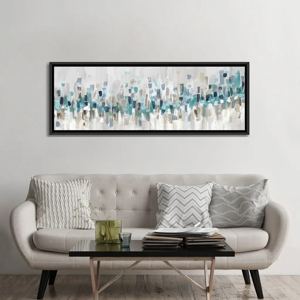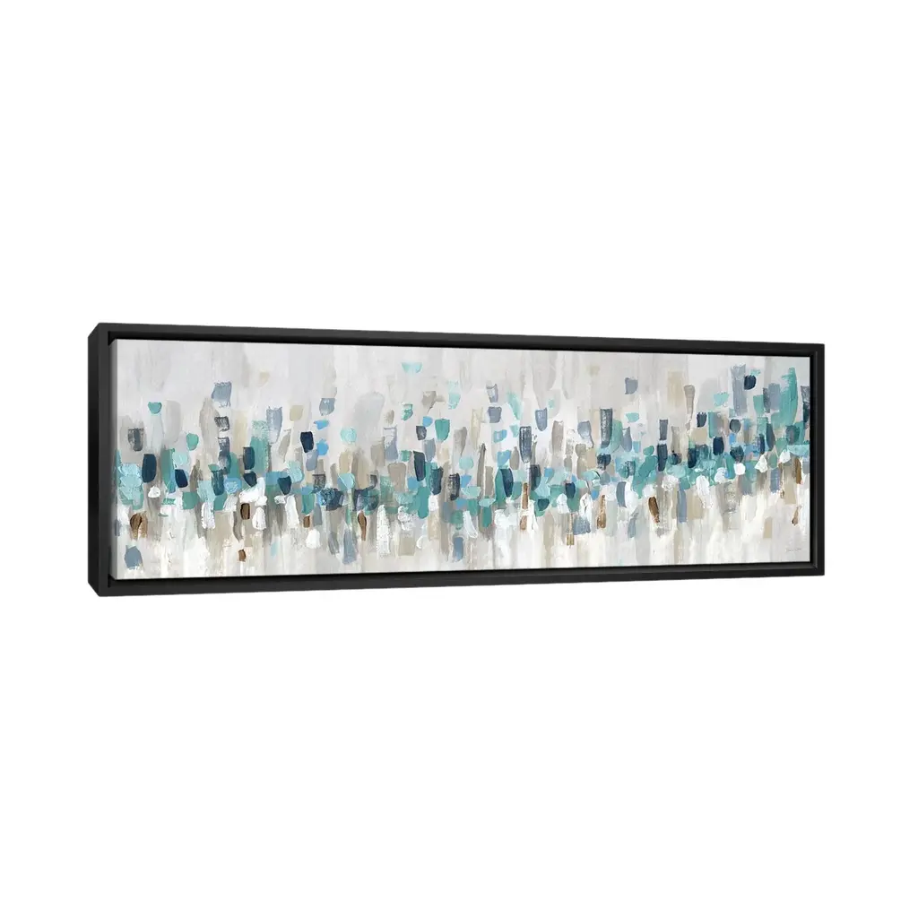 Icanvas "Blue Staccato" By Katrina Craven Framed Canvas Print - 24x72 - Black