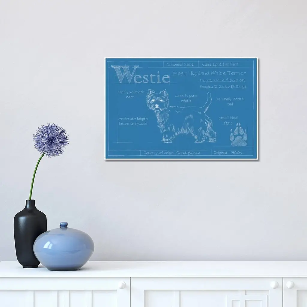 Icanvas "Blueprint Of A Westie" By Ethan Harper Canvas Print - 8X12x0.75