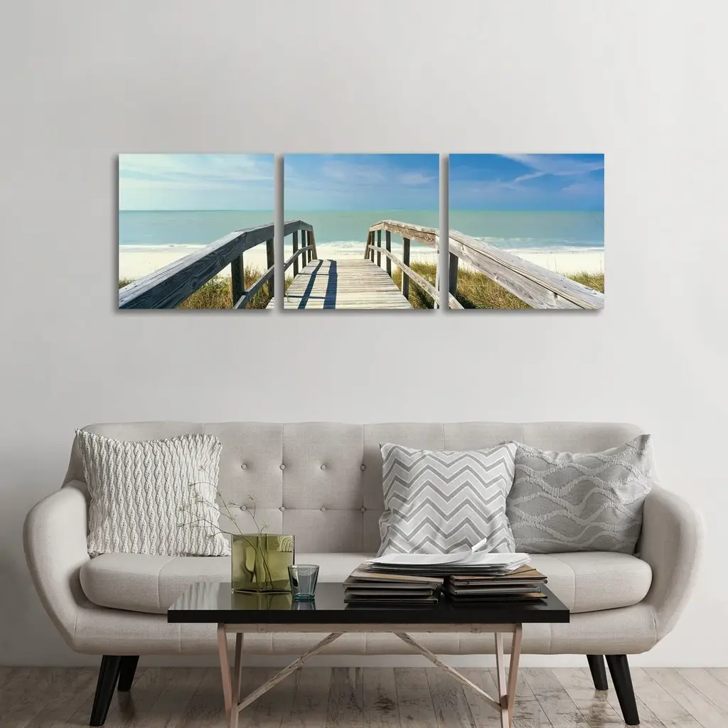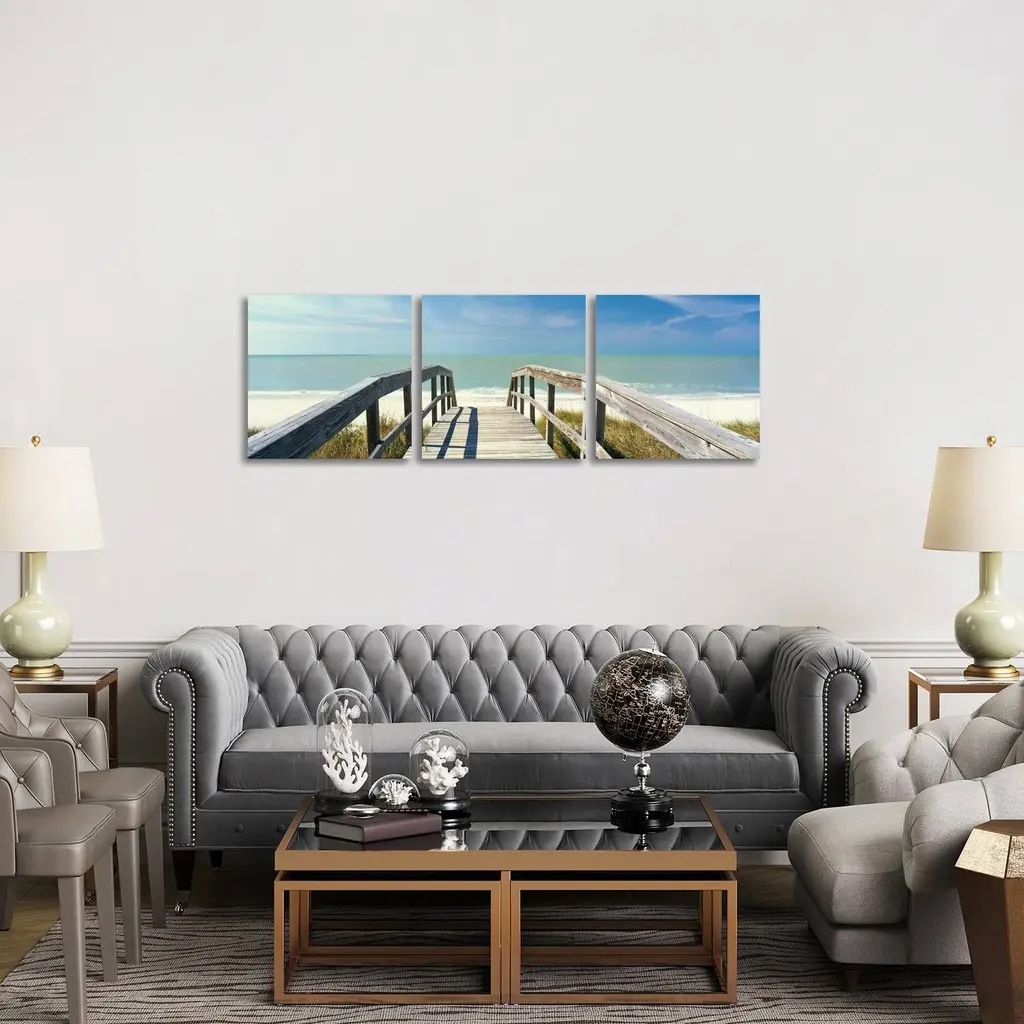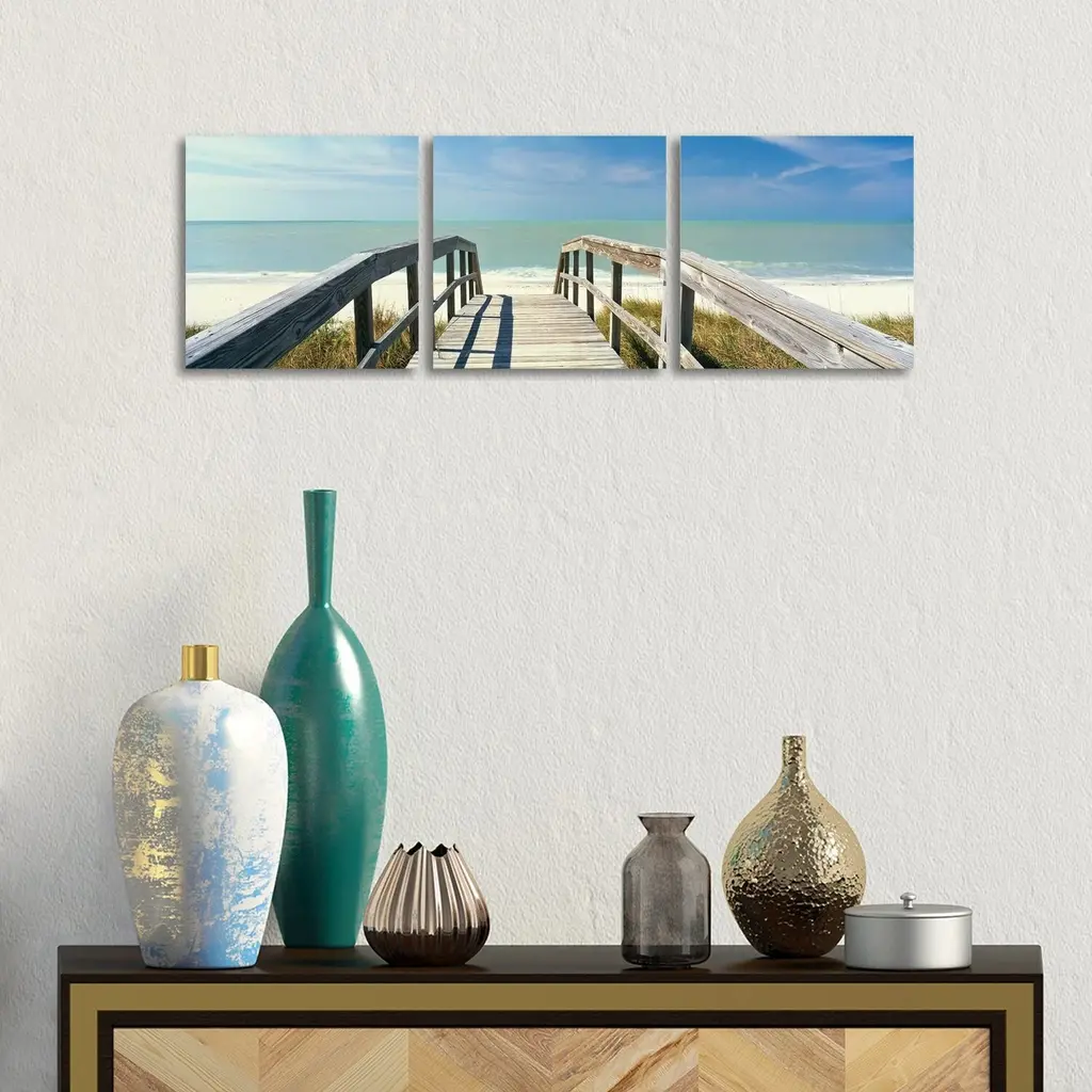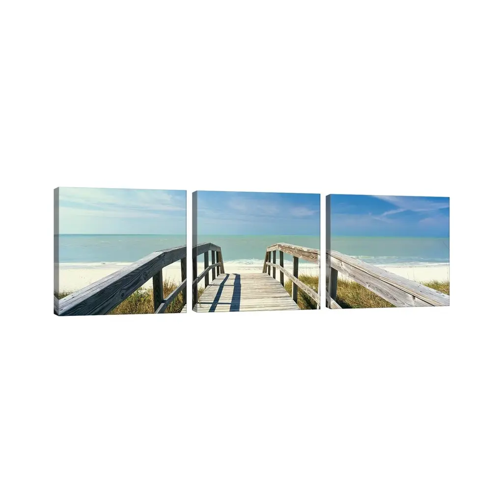 Icanvas "Boardwalk On The Beach, Gasparilla Island, Florida, Usa" By Panoramic Images 3-Piece Canvas Wall Art Set - 12x36x1.5