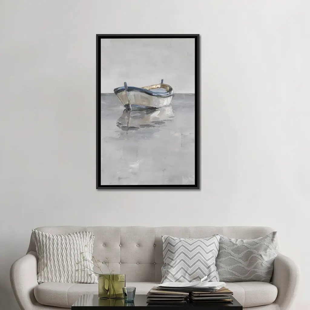 Icanvas "Boat On The Horizon Ii" By Ethan Harper Framed Canvas Print - Black - 40x26