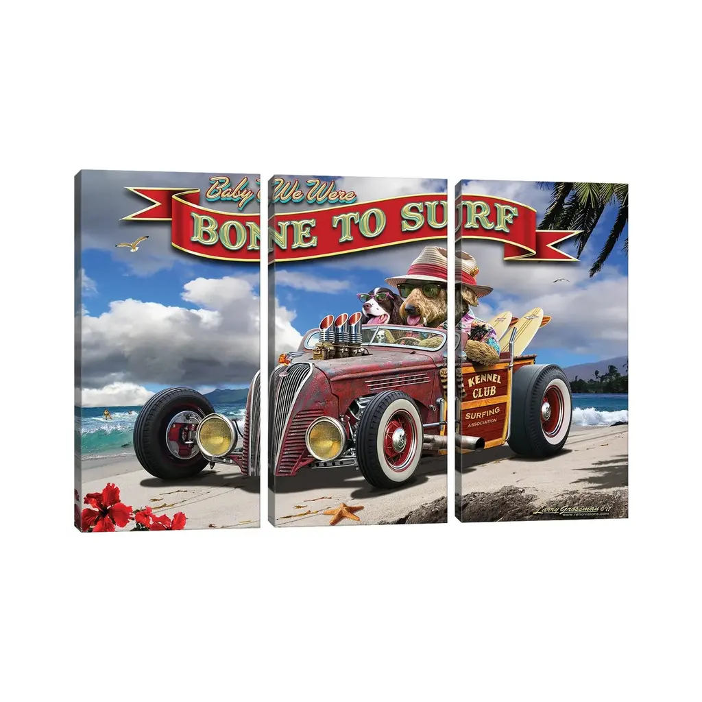 Icanvas "Bone To Surf" By Larry Grossman 3-Piece Canvas Wall Art Set - 40x60x1.5