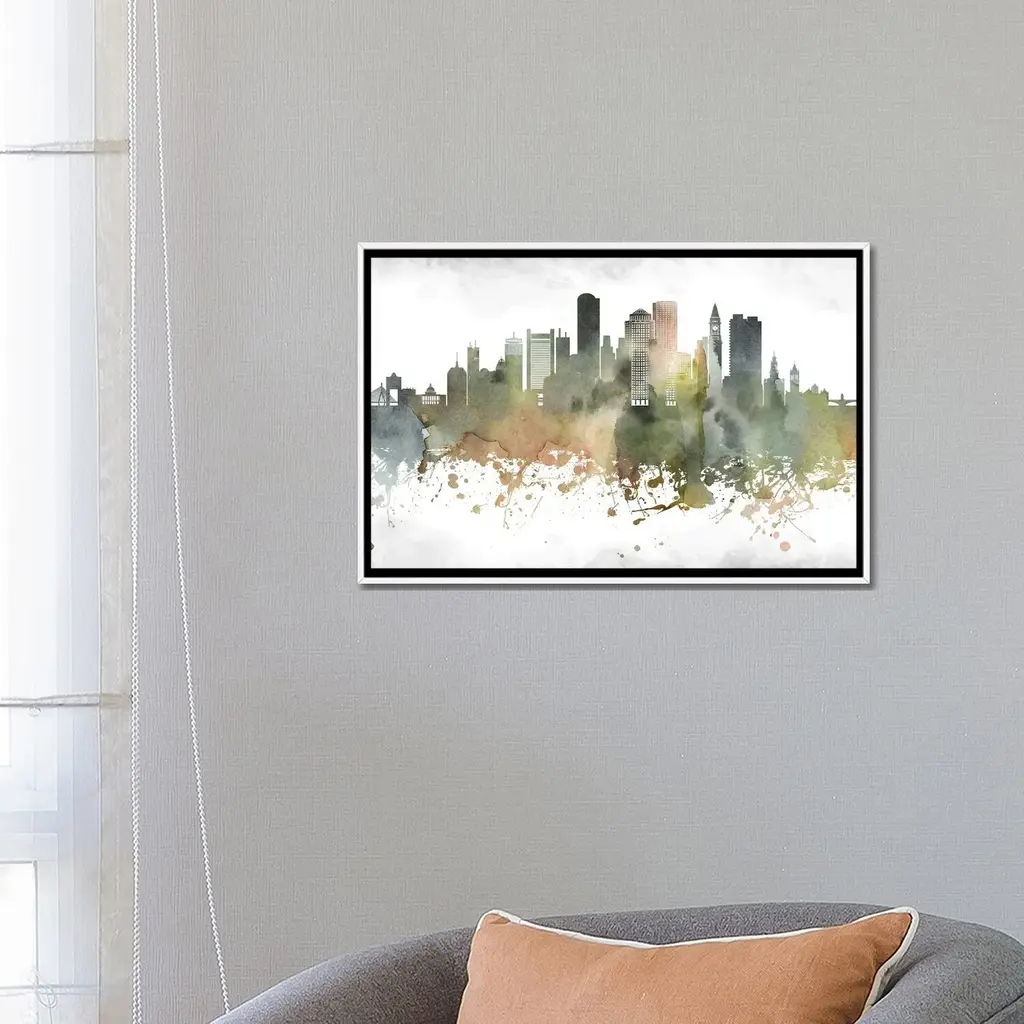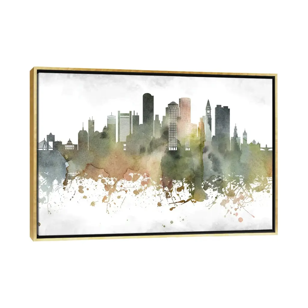 Icanvas "Boston Skyline" By Walldecoraddict Framed Canvas Print - Black - 26x40