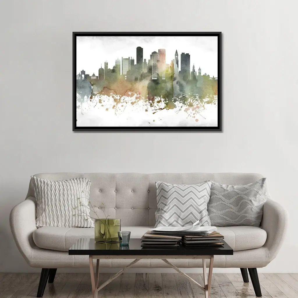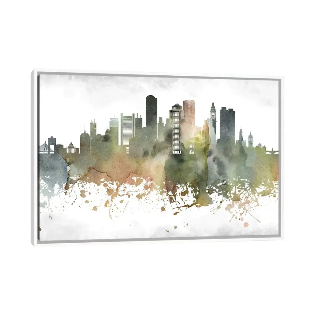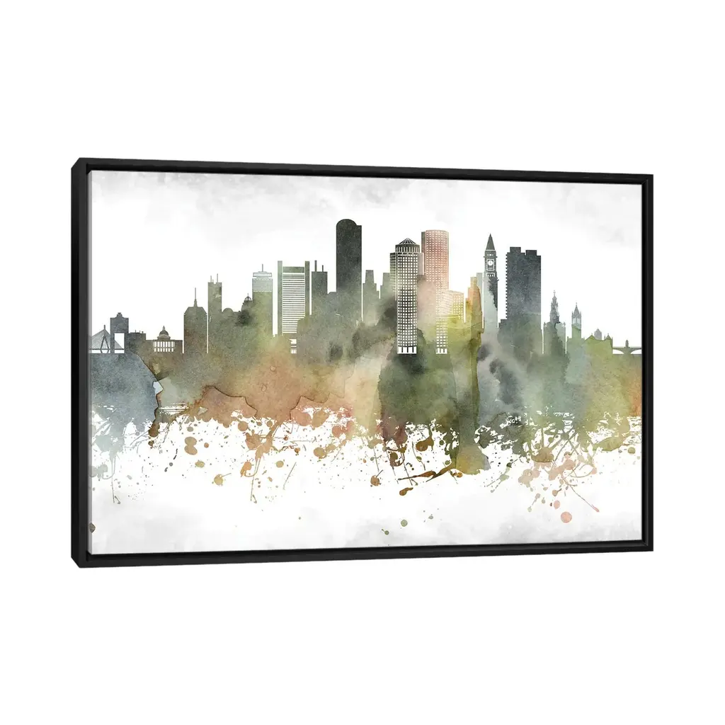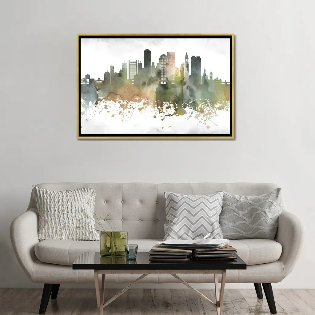 Icanvas "Boston Skyline" By Walldecoraddict Framed Canvas Print - Gold - 26x40