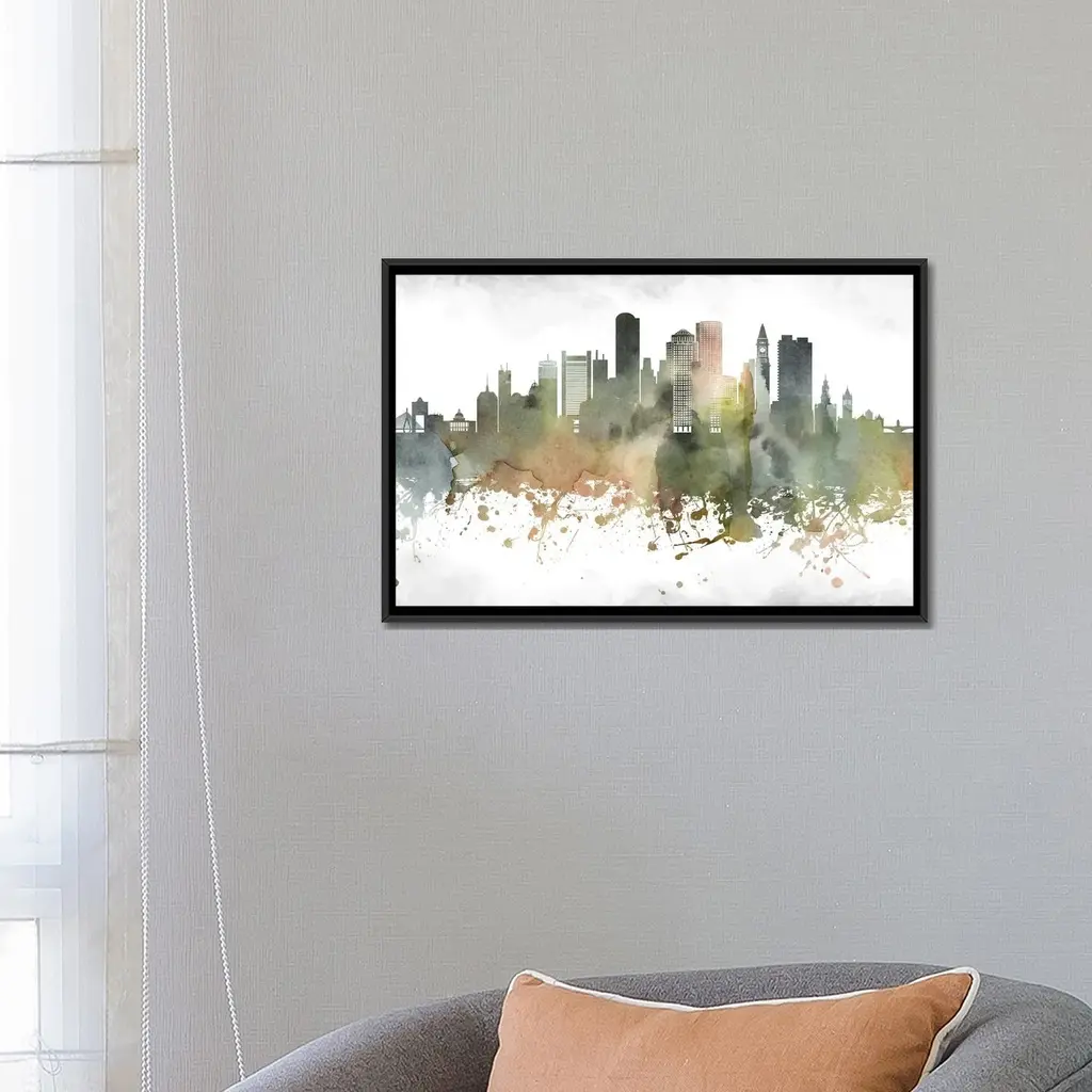 Icanvas "Boston Skyline" By Walldecoraddict Framed Canvas Print - White - 18x26