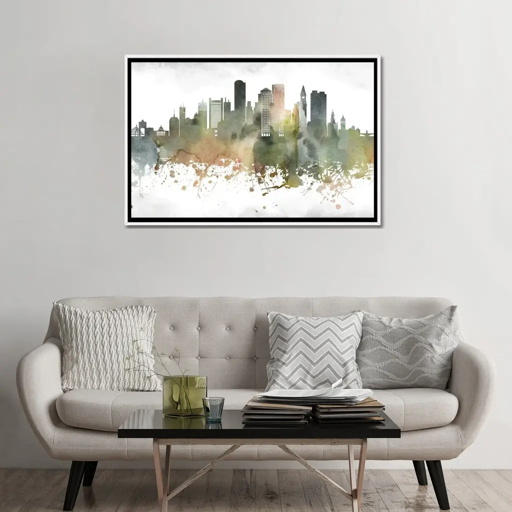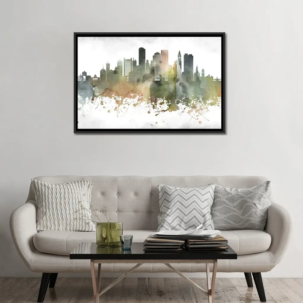 Icanvas "Boston Skyline" By Walldecoraddict Framed Canvas Print - White - 32x48