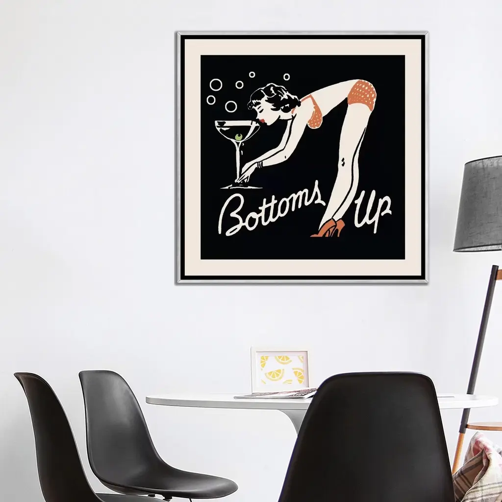 Icanvas "Bottoms Up - Vintage Ad Poster" By Retro Series Framed - 12x12 - Charcoal