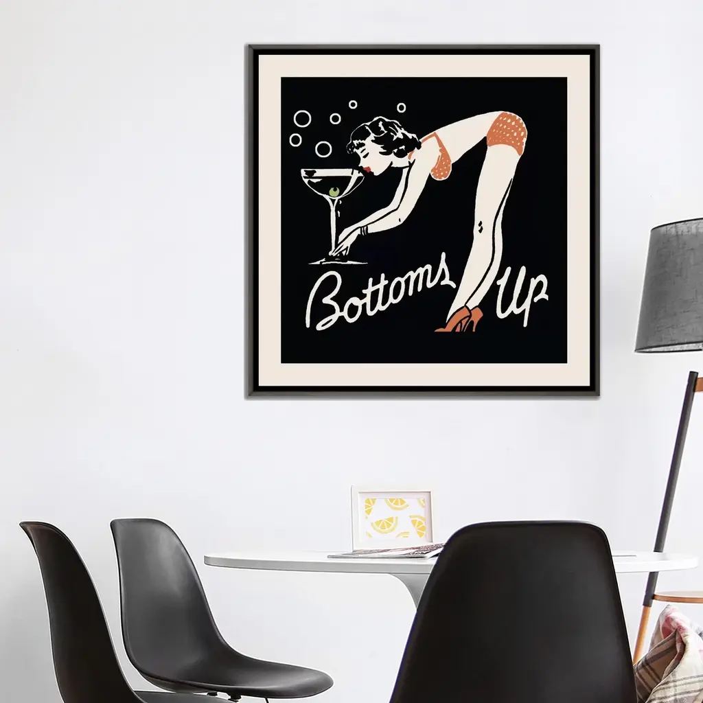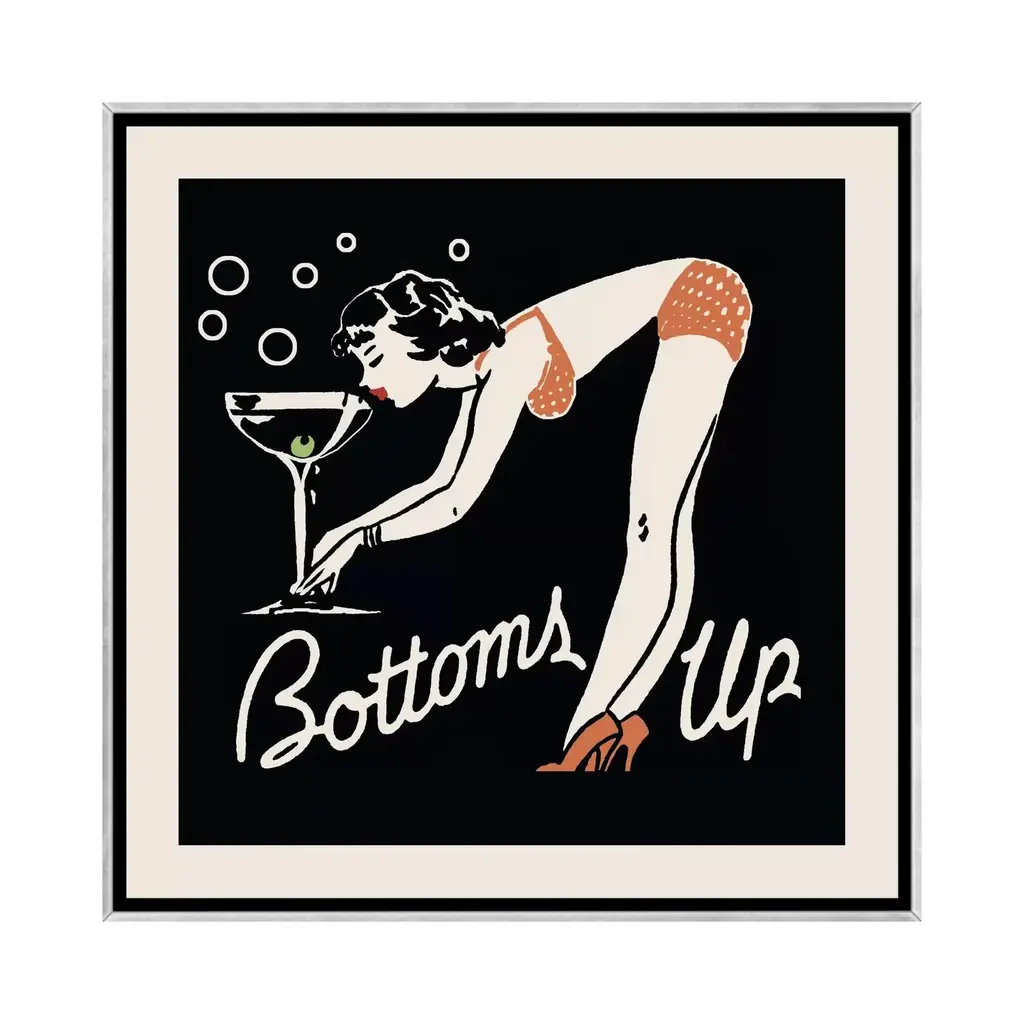 Icanvas "Bottoms Up - Vintage Ad Poster" By Retro Series Framed - 37x37 - Ebony