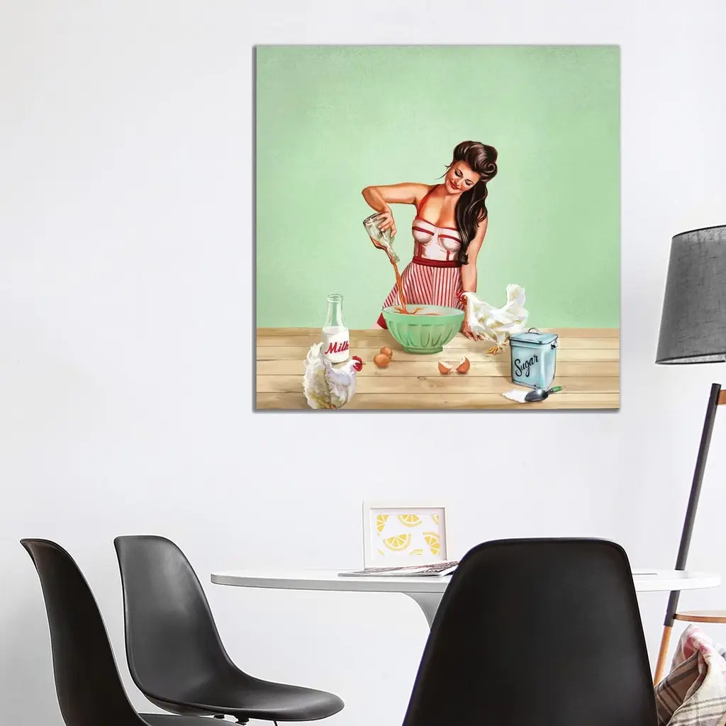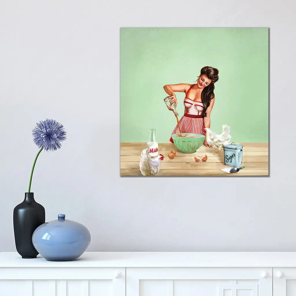 Icanvas "Bourbon Chickens Pinup Tray" By The Whiskey Ginger Canvas Print - 12x12x1.5