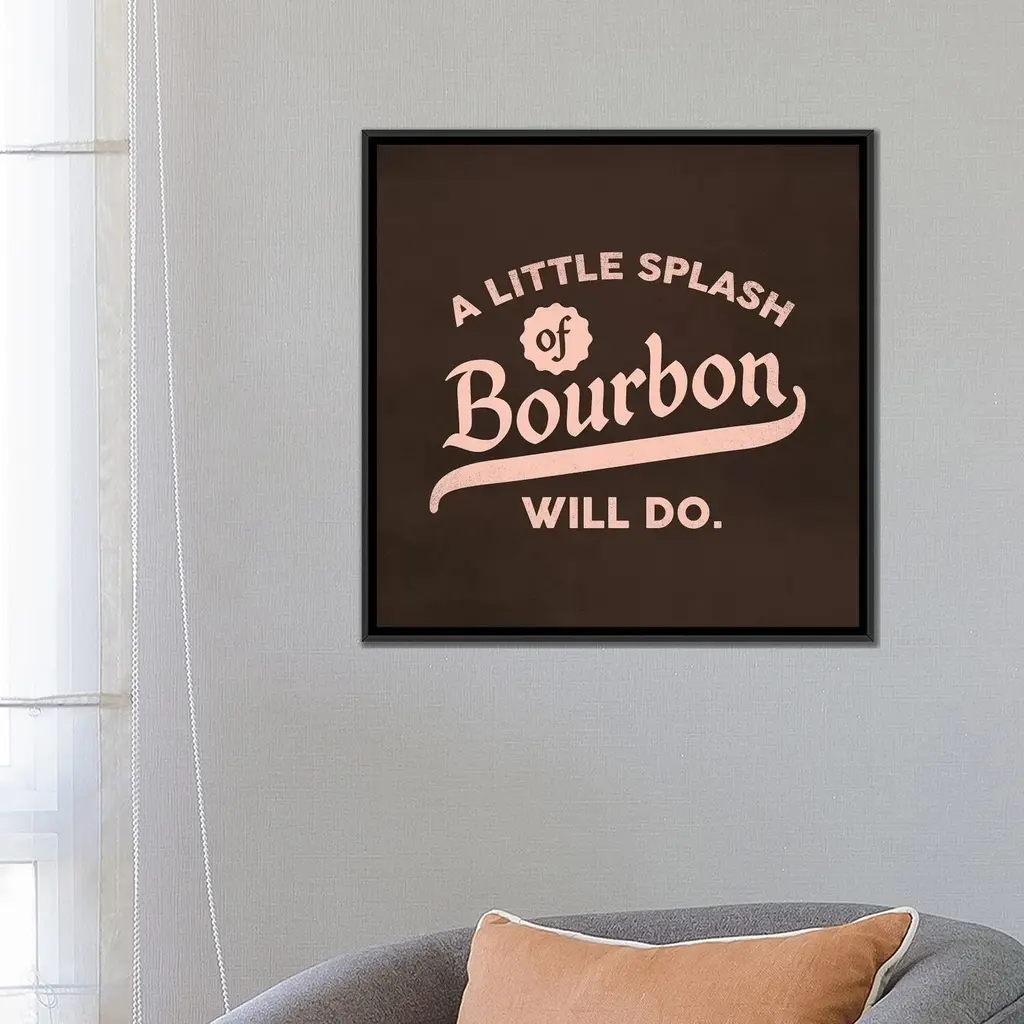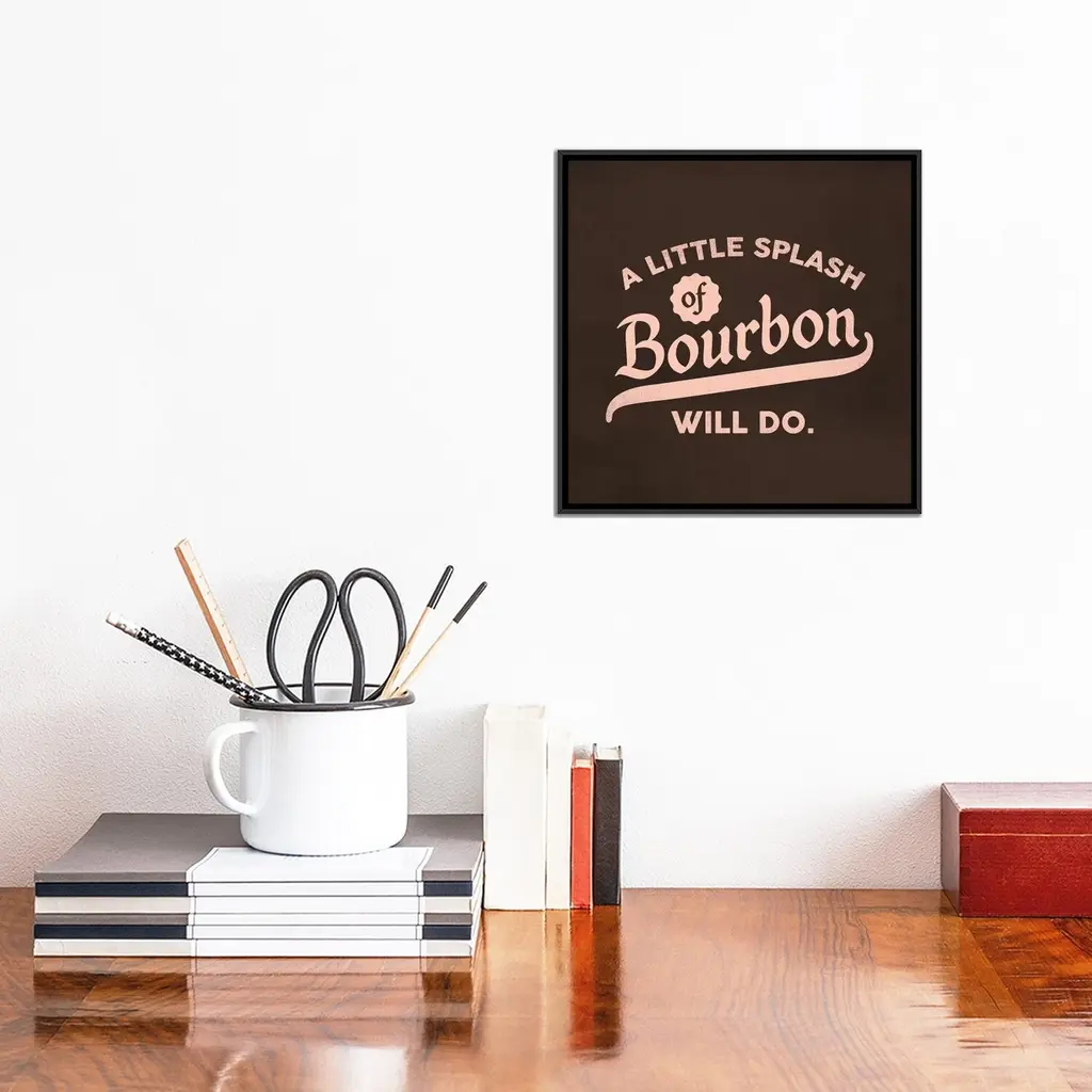 Icanvas "Bourbon Splash Lettering" By The Whiskey Ginger Framed Canvas Print - Black - 12x12