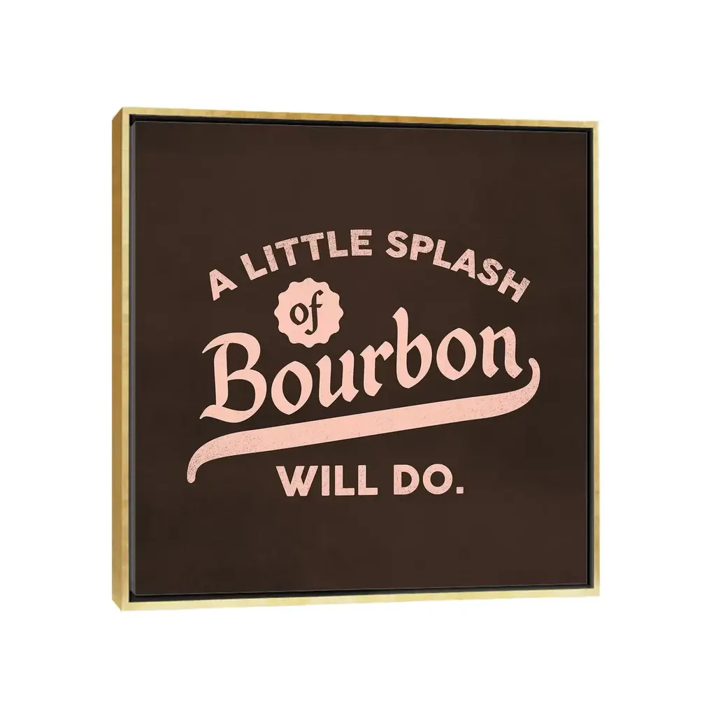 Icanvas "Bourbon Splash Lettering" By The Whiskey Ginger Framed Canvas Print - Gold - 18x18
