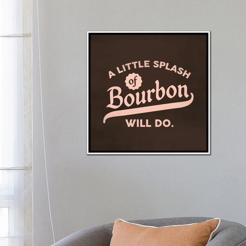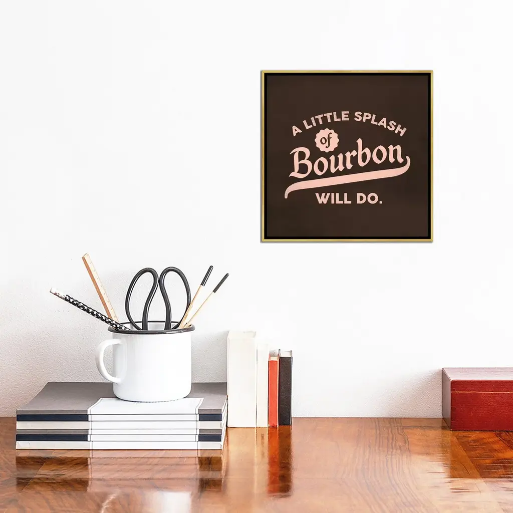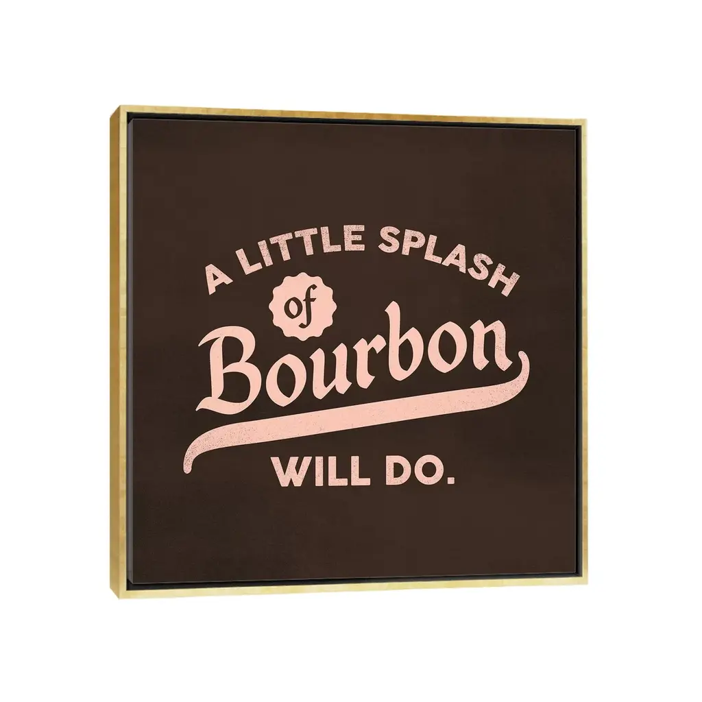 Icanvas "Bourbon Splash Lettering" By The Whiskey Ginger Framed Canvas Print - Gold - 26x26