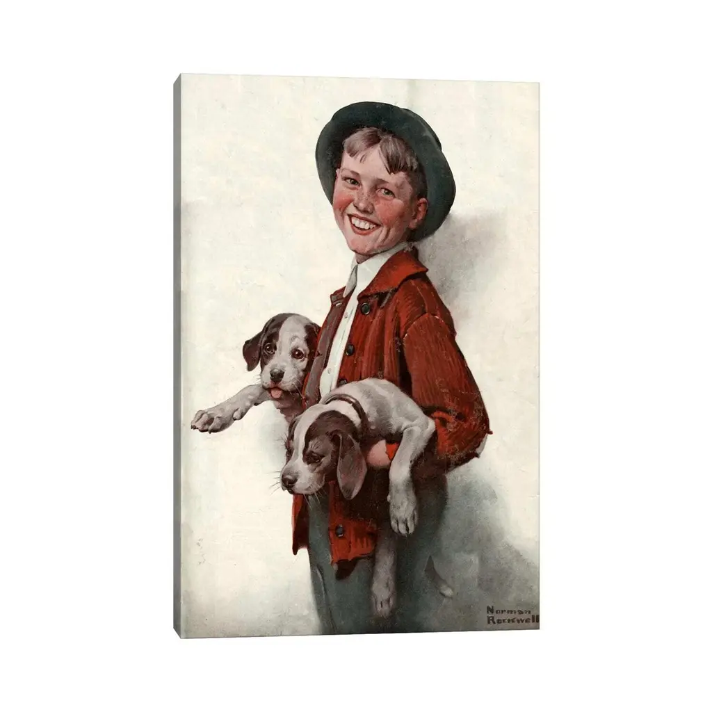 Icanvas "Boy With Puppies" By Norman Rockwell Canvas Print - 40x26x1.5