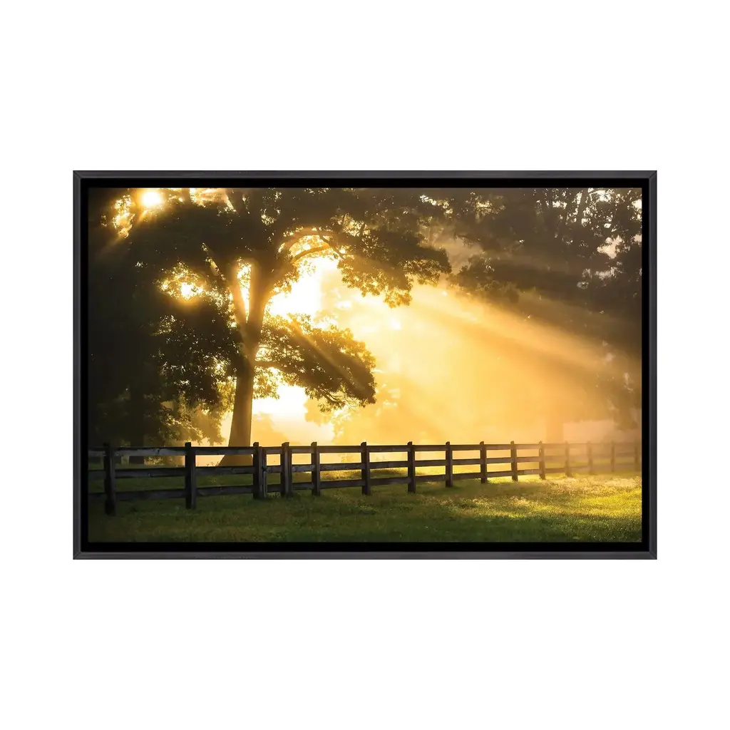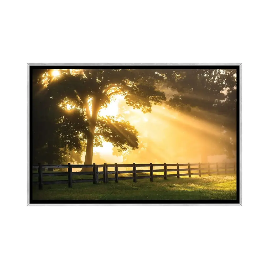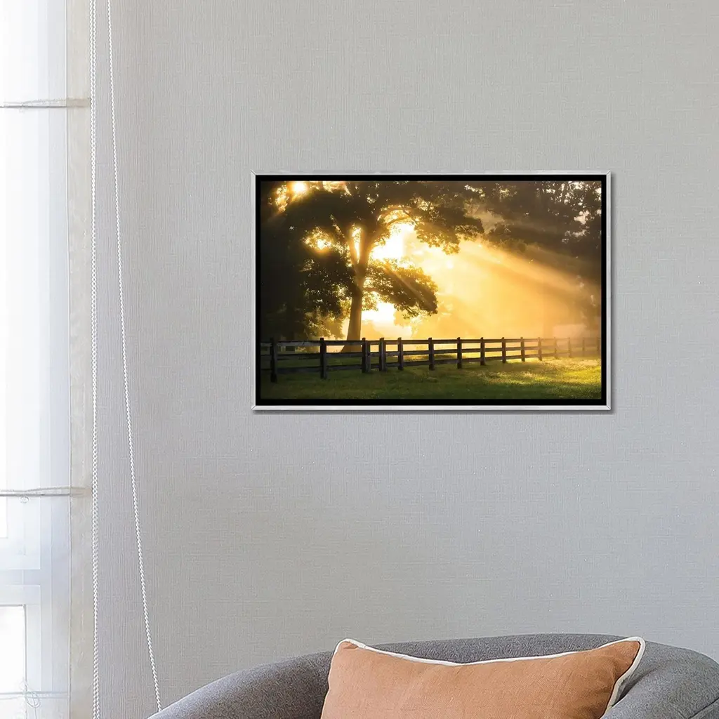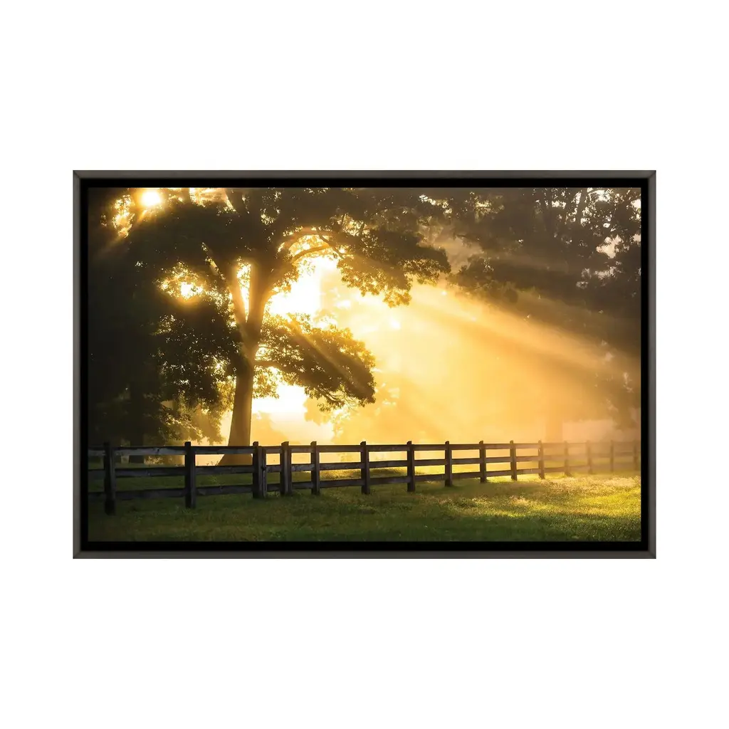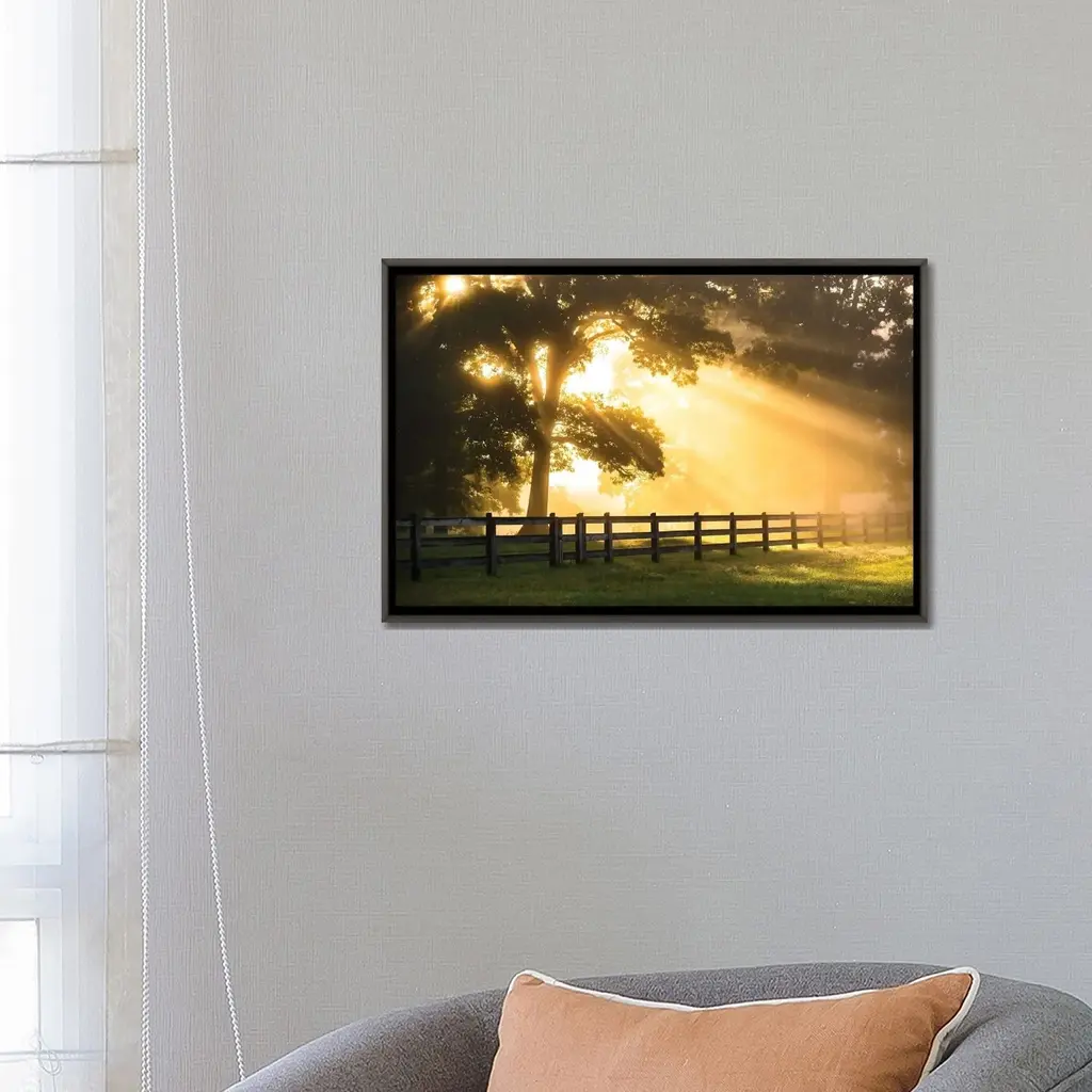 Add brilliance and exceptional detail to your space with the iCanvas "Break Of Dawn" by Lucas Moore Framed artwork. Crafted in the USA with artist-grade canvas, this Giclee canvas artwork offers the texture, look, and feel of fine-art paintings. Professionally hand-stretched and stapled over North American pine-wood bars in Gallery Wrap style, this artwork is presented in the same method utilized by artists in galleries. The artwork comes mounted to a 2-inch thick, elegant hardwood frame, creating a "floating" illusion with a 3/8" space between the art and frame. With fade-resistant archival inks, the vibrant colors will remain perfect for decades even when exposed to strong light. Embrace contemporary style and elevate your space with this captivating piece.Features:
