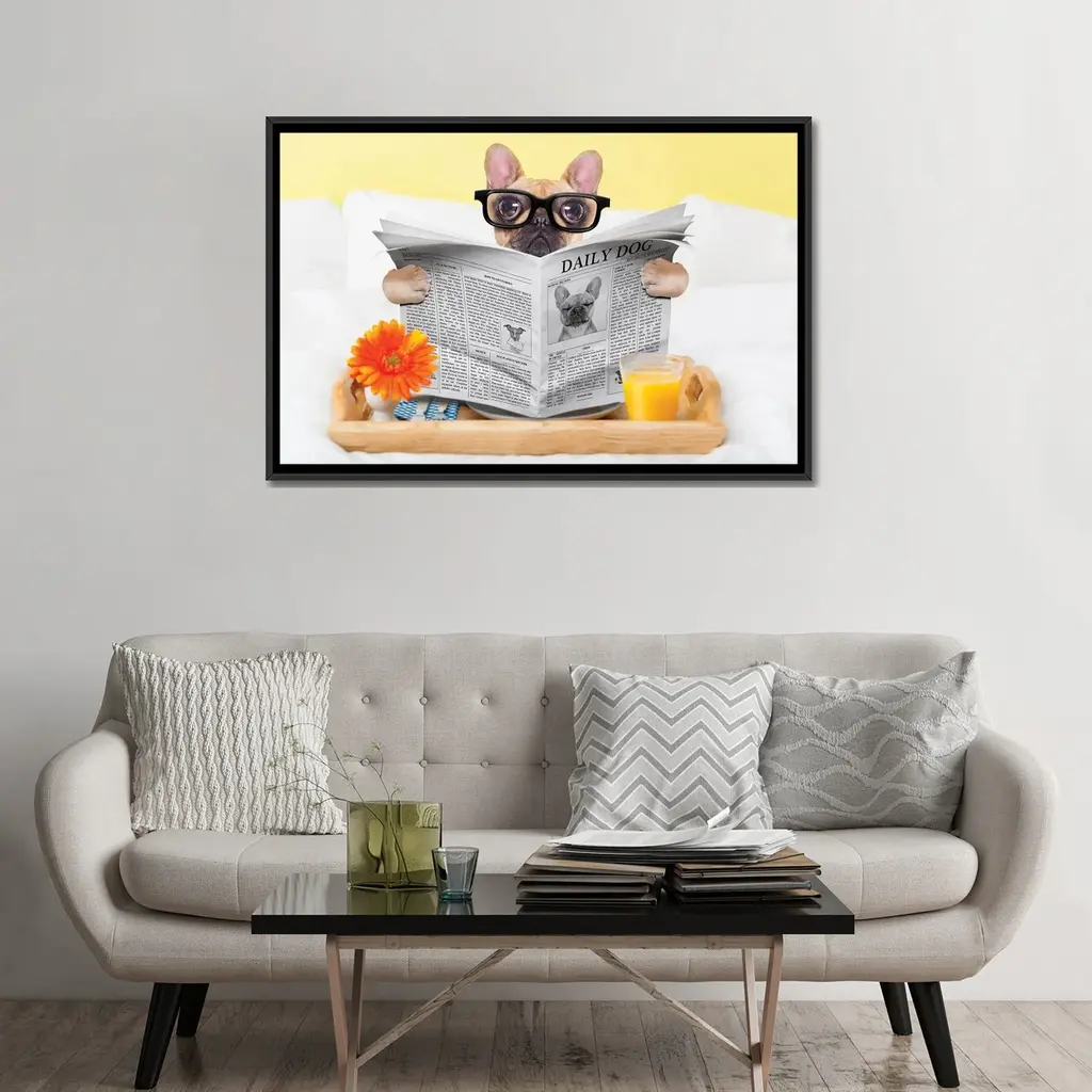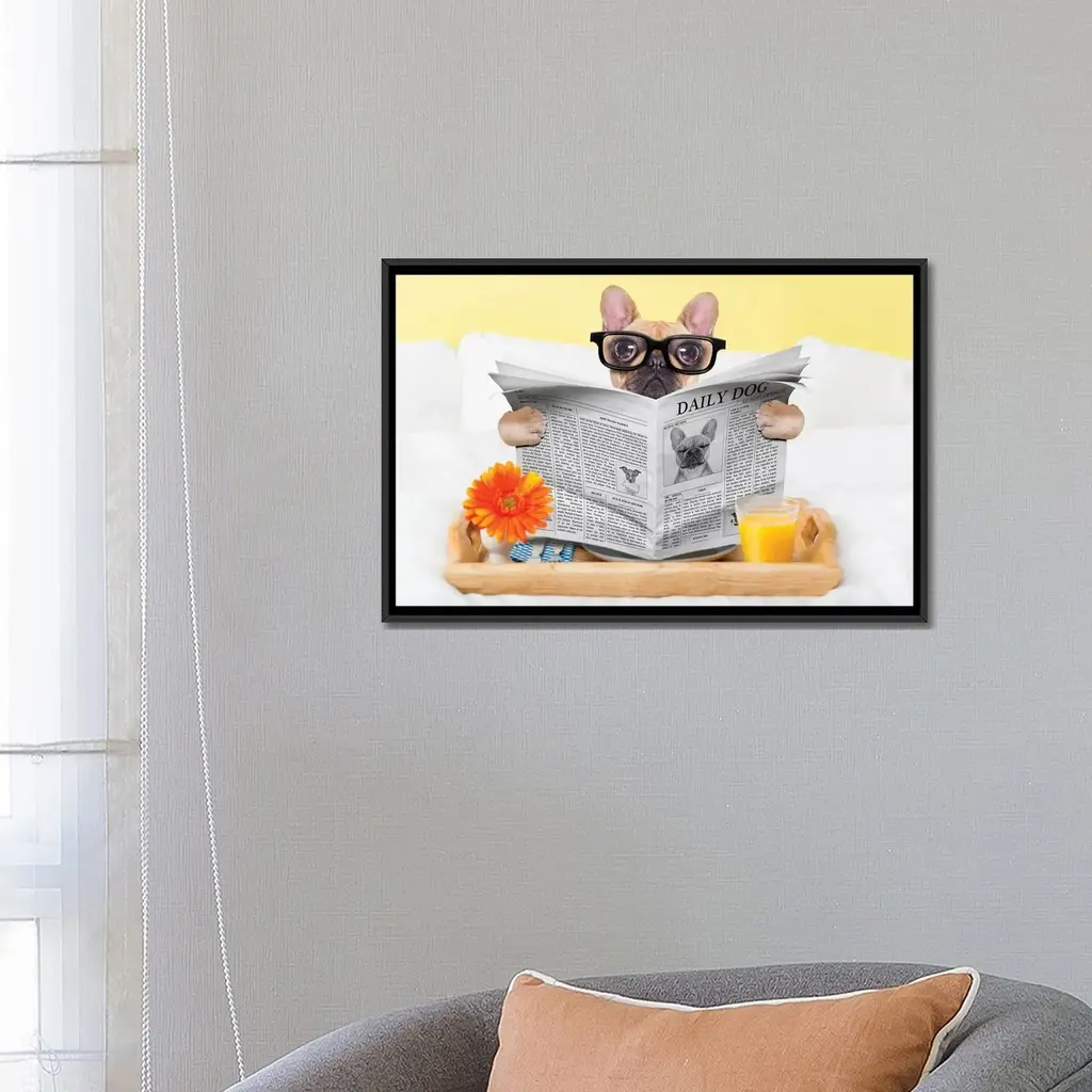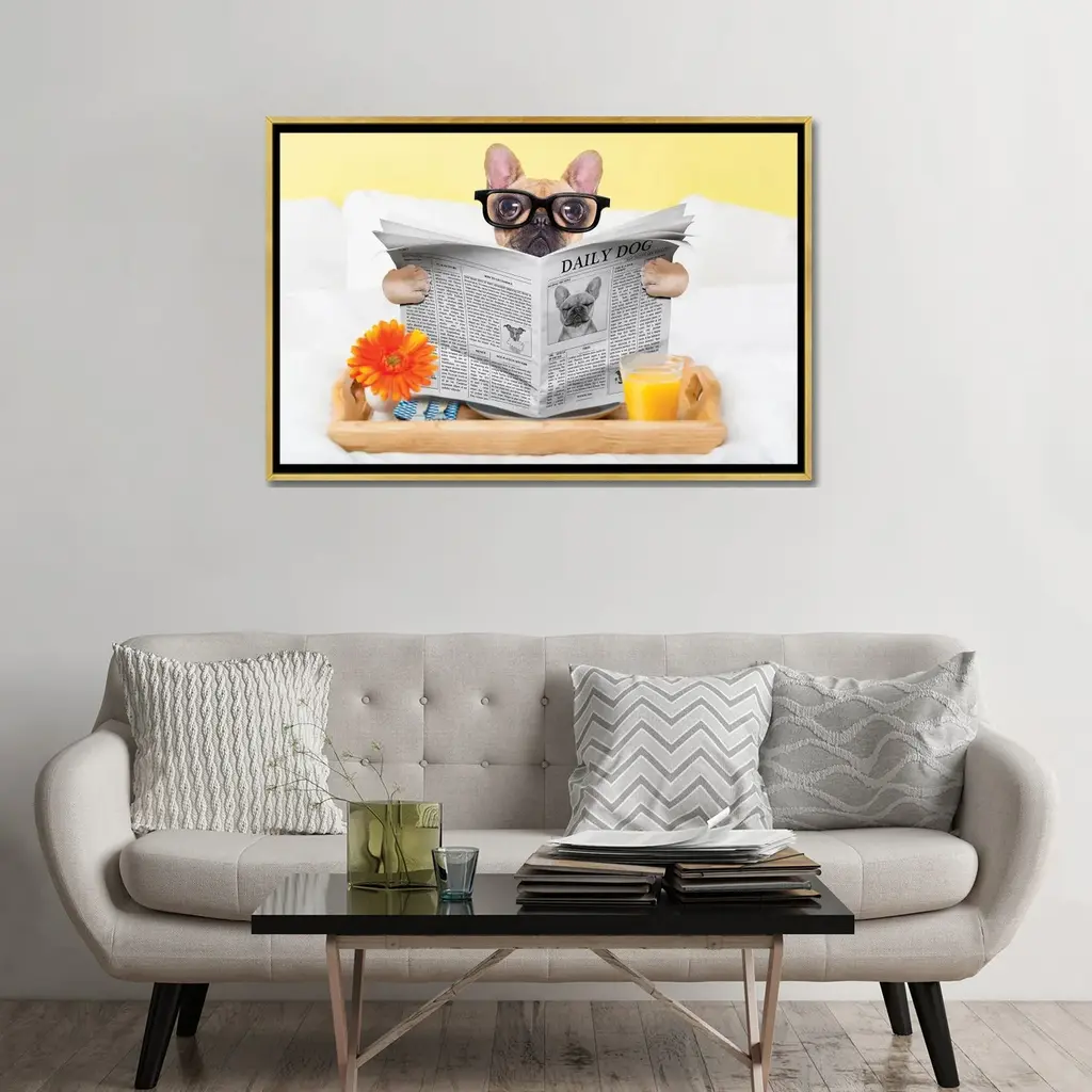Icanvas "Breakfast In Bed" By Damedeeso Framed Canvas Print - Gold - 18x26