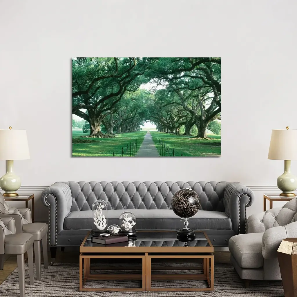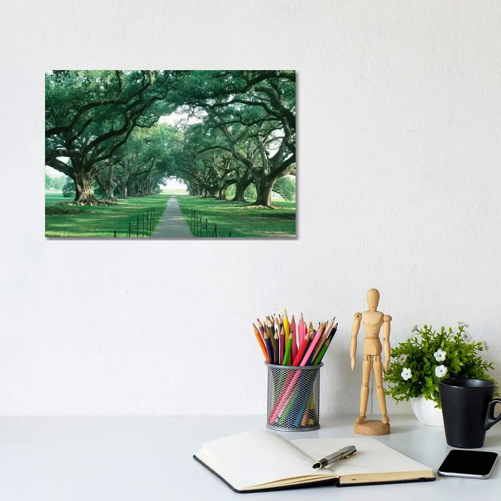 Icanvas "Brick Path Through Alley Of Oak Trees, Louisiana, New Orleans, Usa" By Panoramic Images Canvas Print - 32x48x1.5