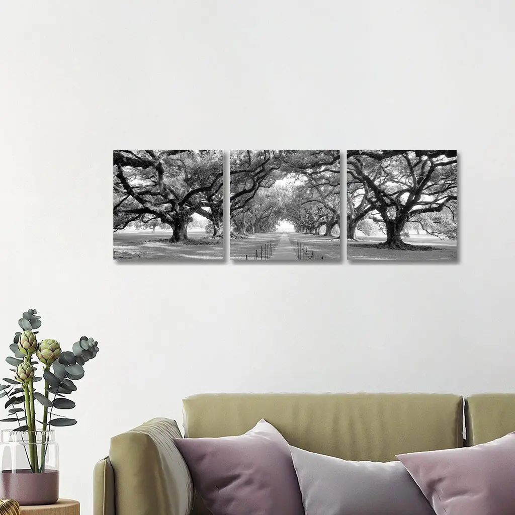 Icanvas "Brick Path Through Alley Of Oak Trees, New Orleans (B&w) Ii" By Panoramic Images 3-Piece Canvas Wall Art Set - 16x48x1.5