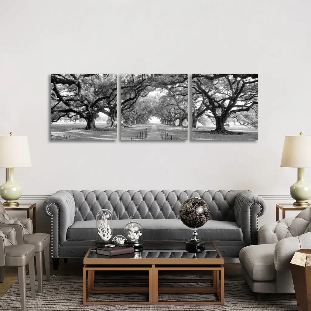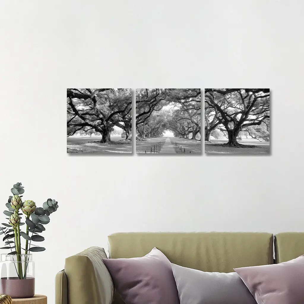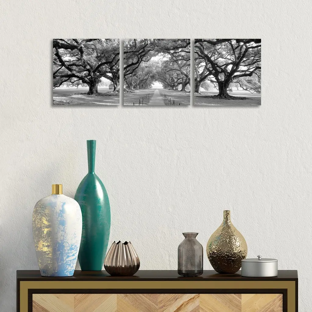 Icanvas "Brick Path Through Alley Of Oak Trees, New Orleans (B&w) Ii" By Panoramic Images 3-Piece Canvas Wall Art Set - 30x90x1.5