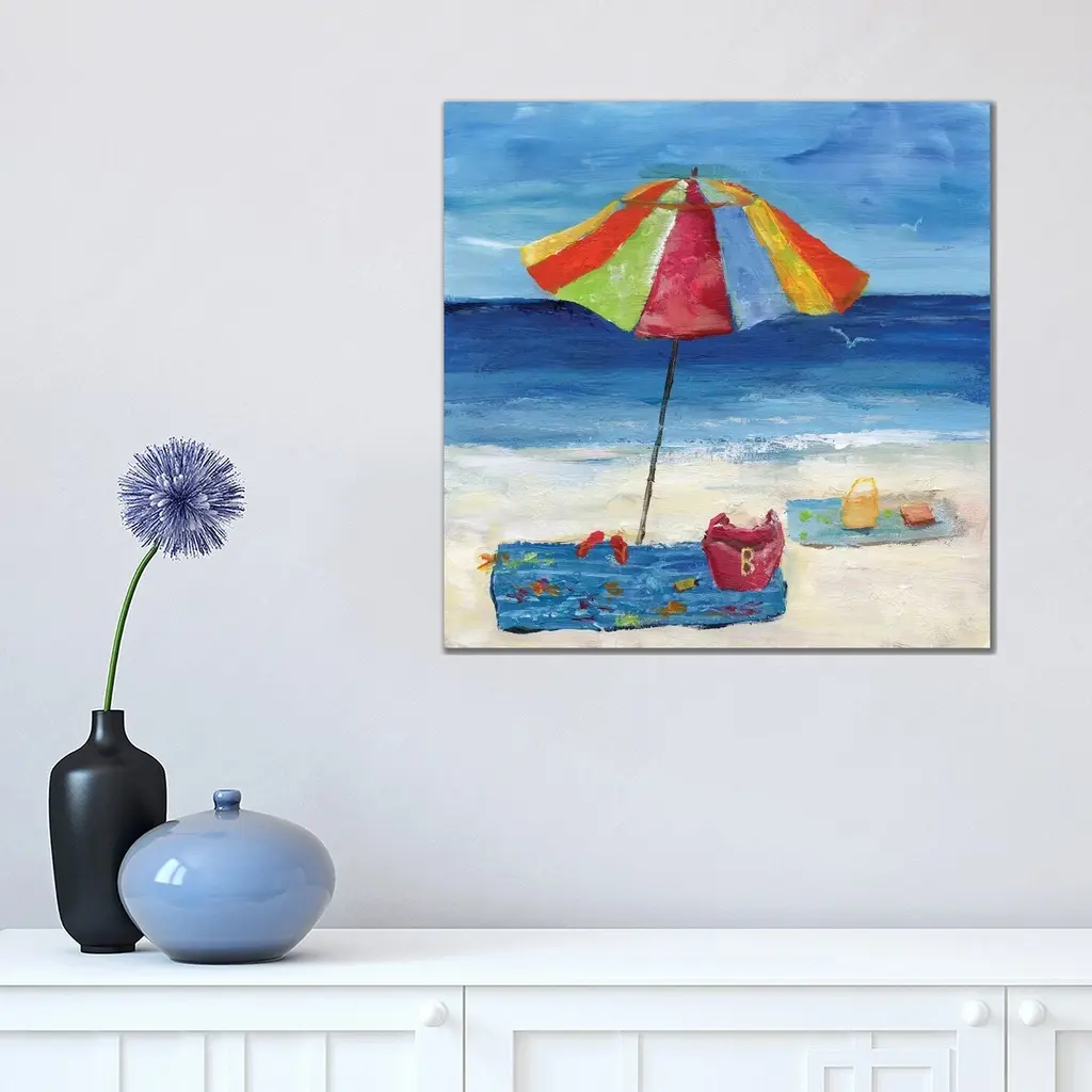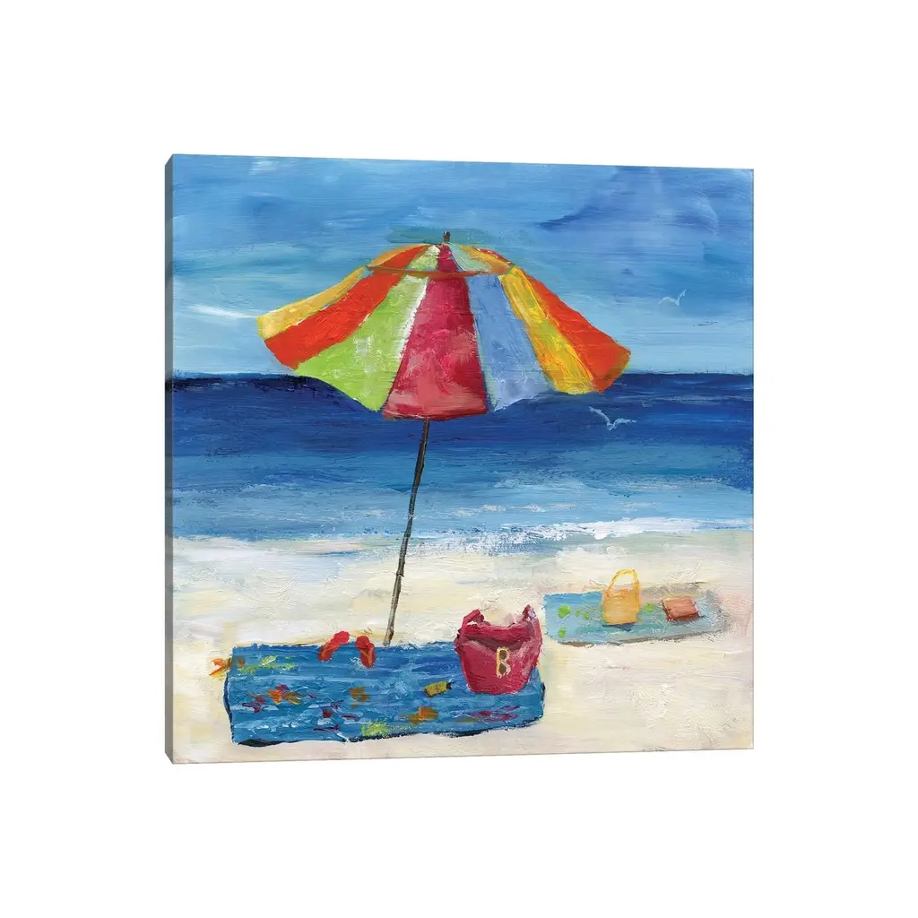 Icanvas "Bright Beach Umbrella I" By Nan Canvas Print - 12x12x0.75