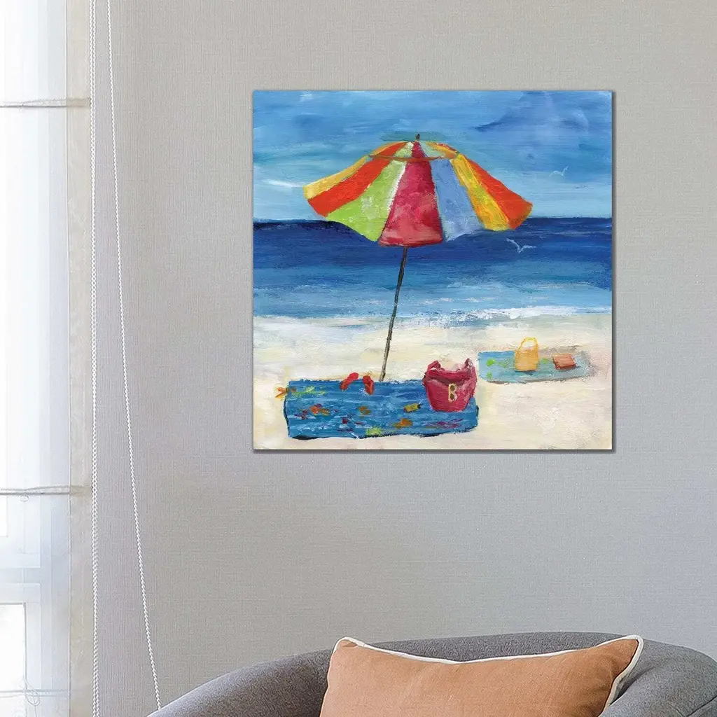 Icanvas "Bright Beach Umbrella I" By Nan Canvas Print - 37x37x1.5
