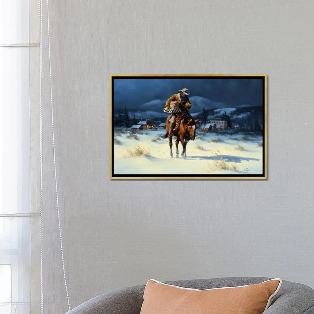 Icanvas "Bringing Christmas Home" By Jack Sorenson Framed Canvas Print - Gold - 18x26
