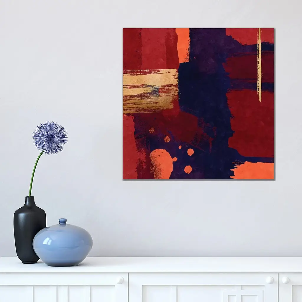 Icanvas "Brush Diptych Red I" By Danilo De Alexandria Canvas Print - 12x12x1.5