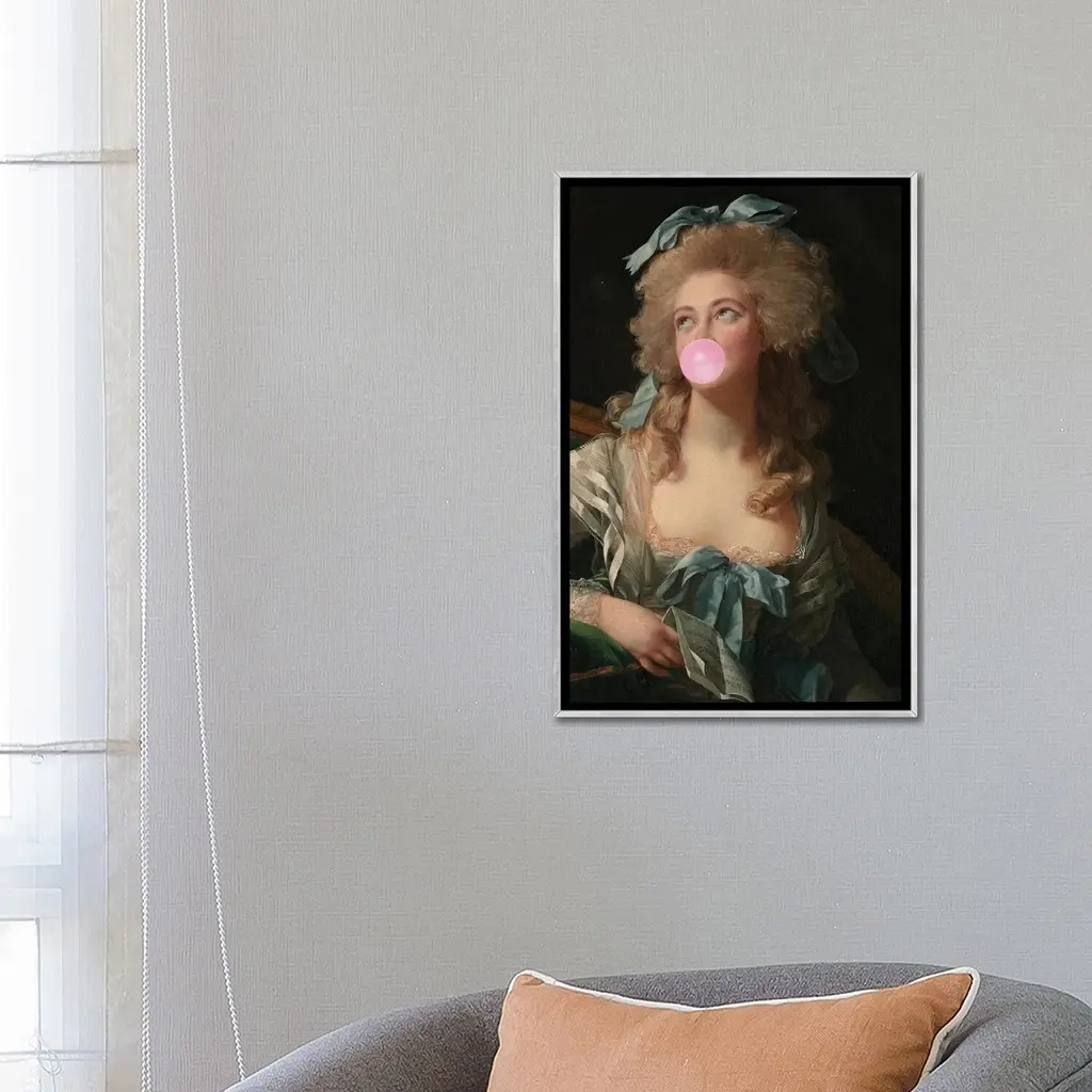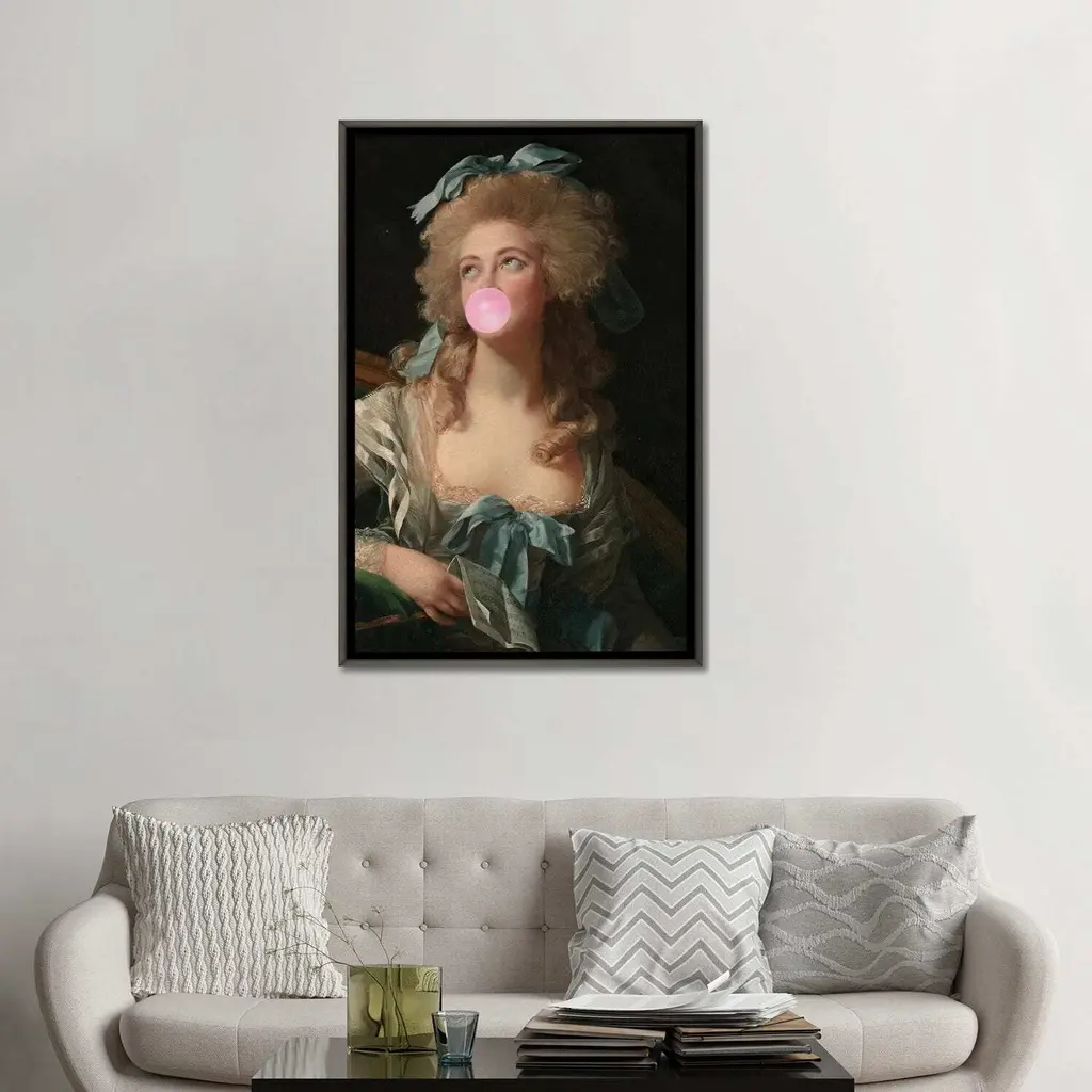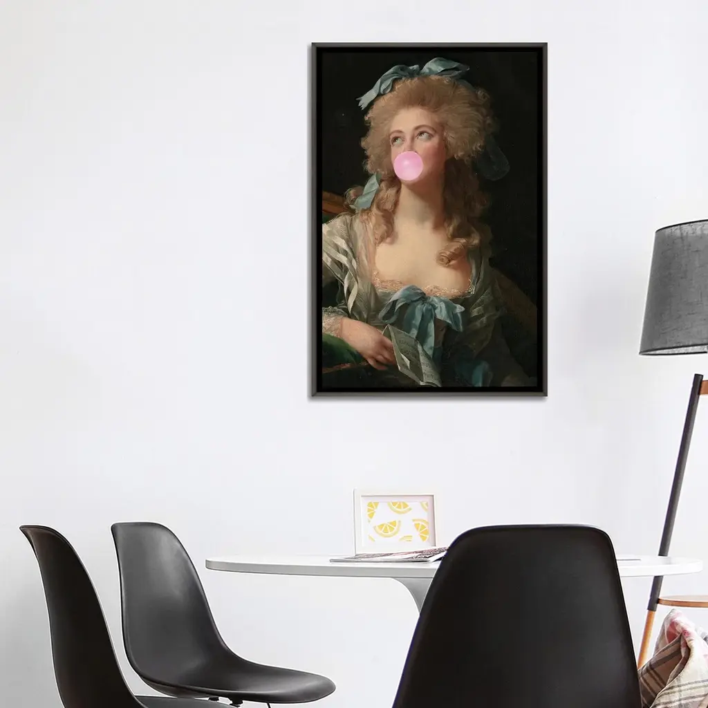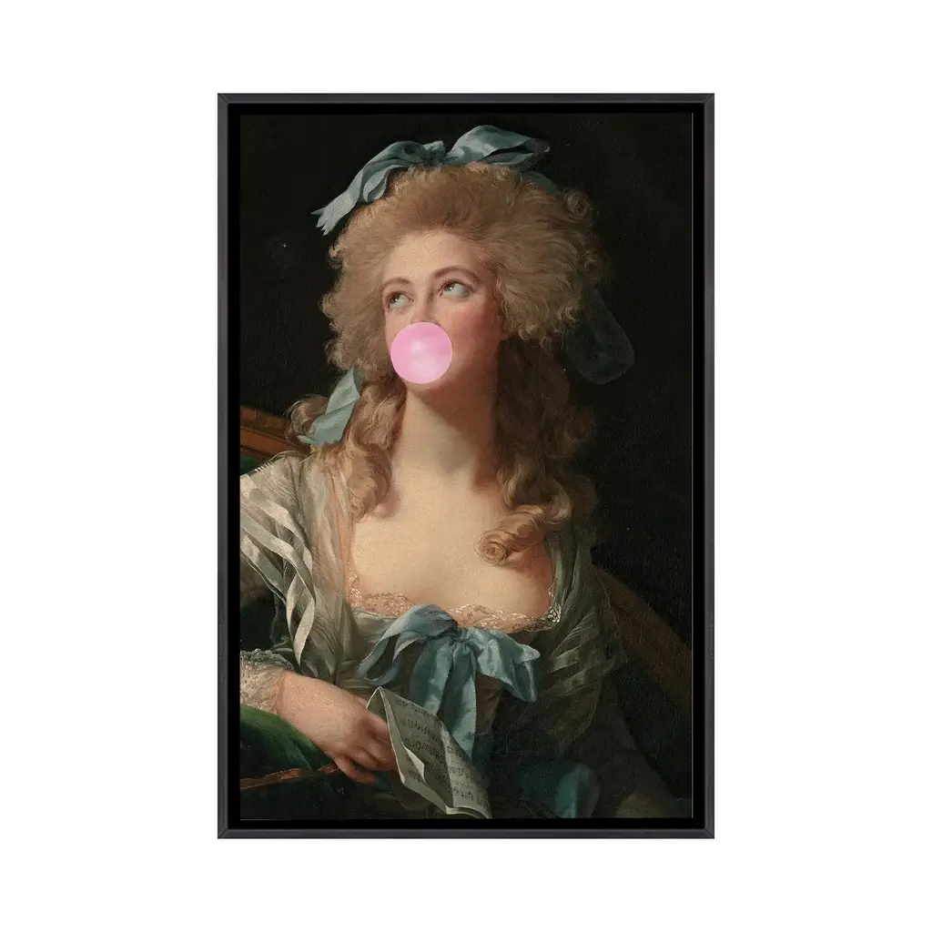 Icanvas "Bubble Gum Blowing Madame" By Grace Digital Art Co Framed - Charcoal - 26x18