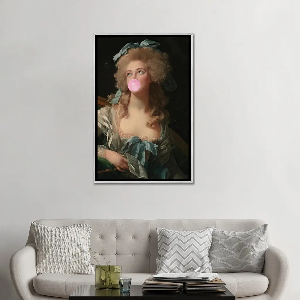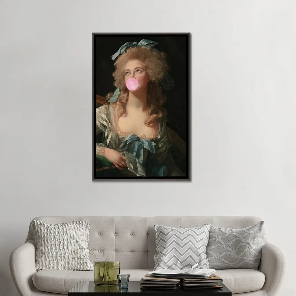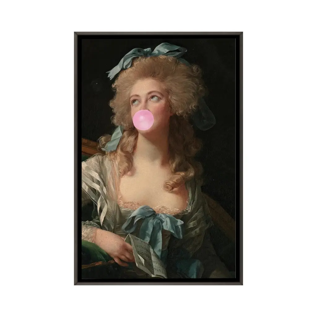 Icanvas "Bubble Gum Blowing Madame" By Grace Digital Art Co Framed - Charcoal - 40x26