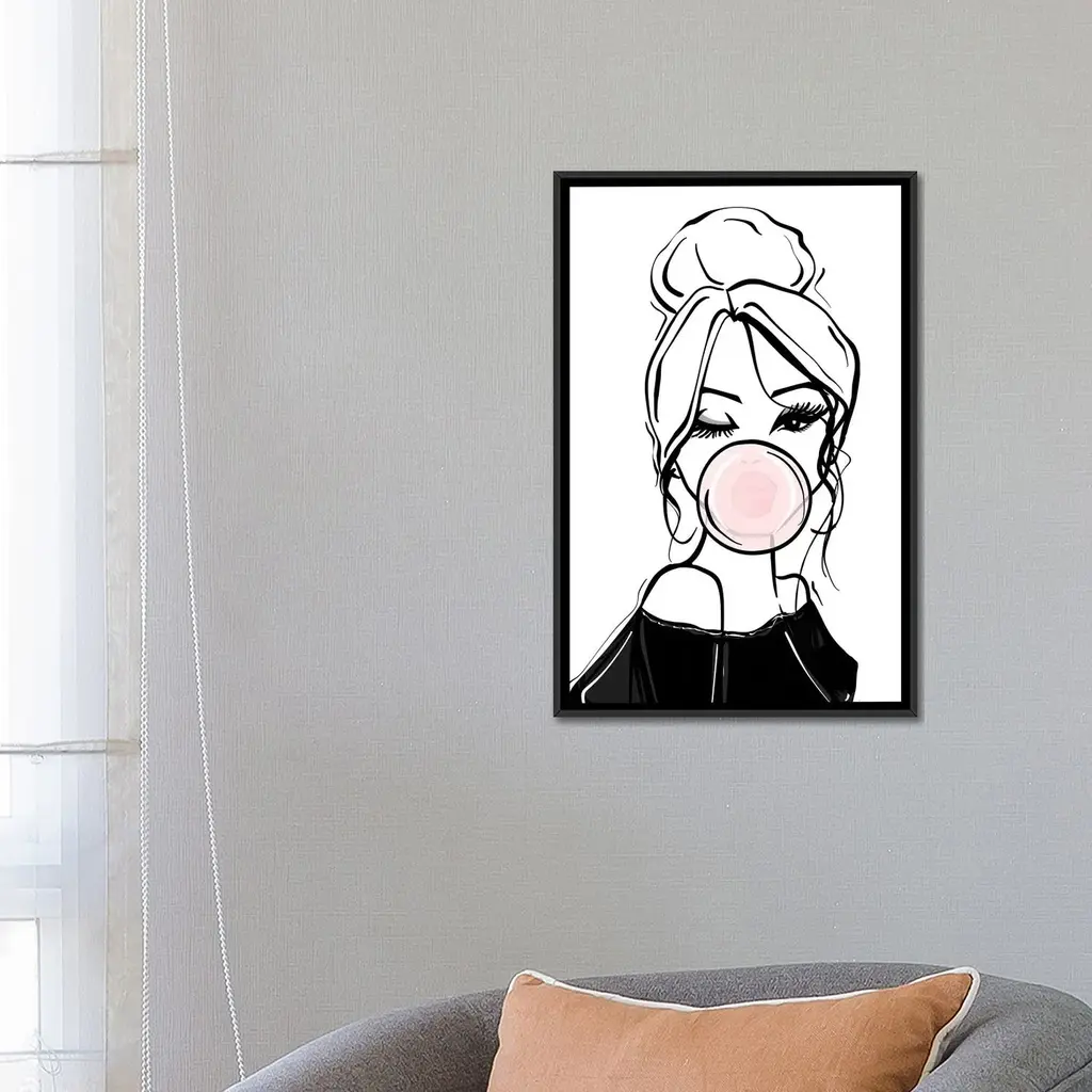 Icanvas "Bubble Gum Wink" By Sabina Fenn Framed Canvas Print - Black - 48x32