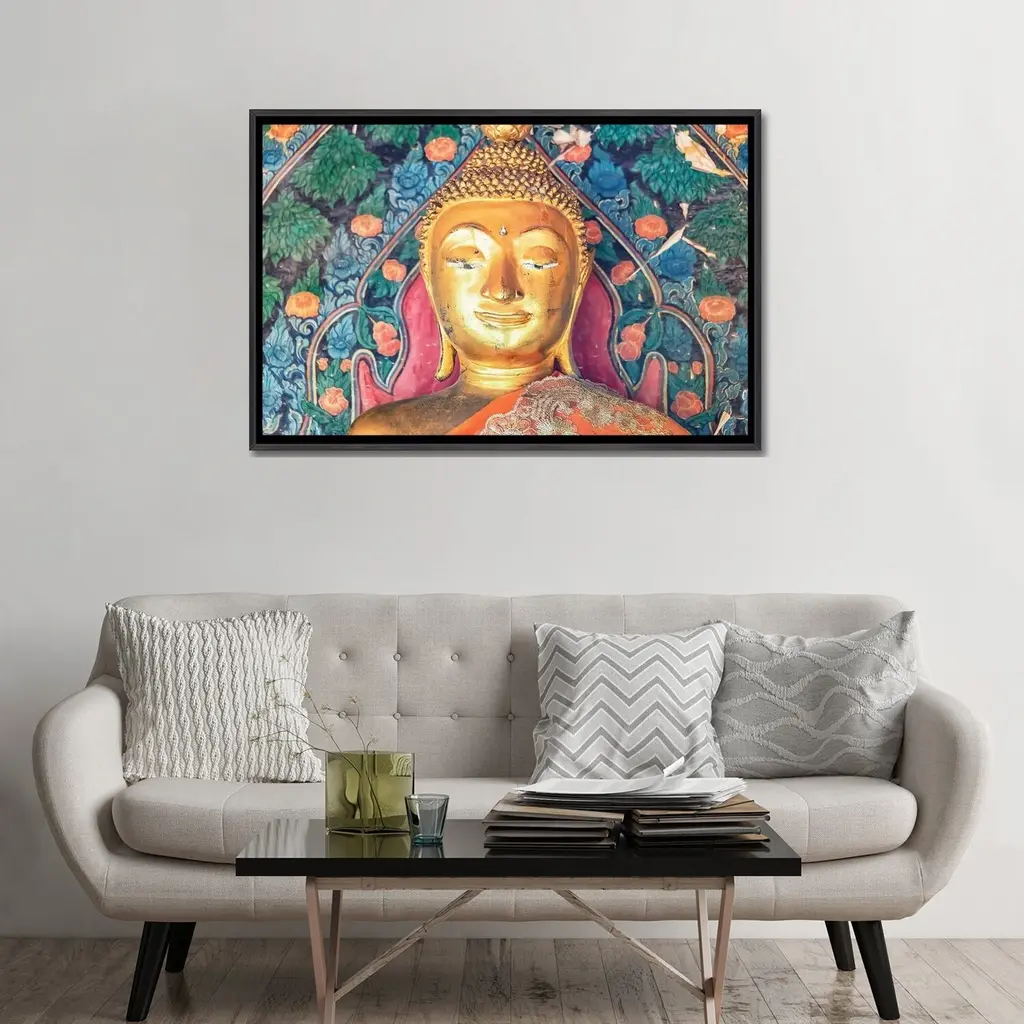 Icanvas "Buddha Head" By Manjik Pictures Framed - Ebony - 18x26