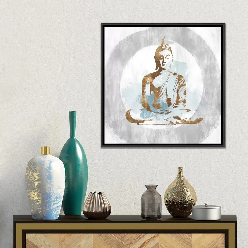Add brilliance and exceptional detail to your space with the "Buddhist II" framed canvas artwork by Isabelle Z. Crafted in the USA with artist-grade canvas, this Giclee artwork offers the texture, look, and feel of fine-art paintings. Professionally hand-stretched and stapled over North American pine-wood bars in a Gallery Wrap style, this artwork is presented just like it would be in a gallery. The 2-inch thick elegant hardwood frame adds a touch of sophistication, while the inset art creates a "floating" illusion. With fade-resistant archival inks, the vibrant colors will remain perfect for decades, even in strong light. Experience contemporary style at its best with this captivating piece.Features: