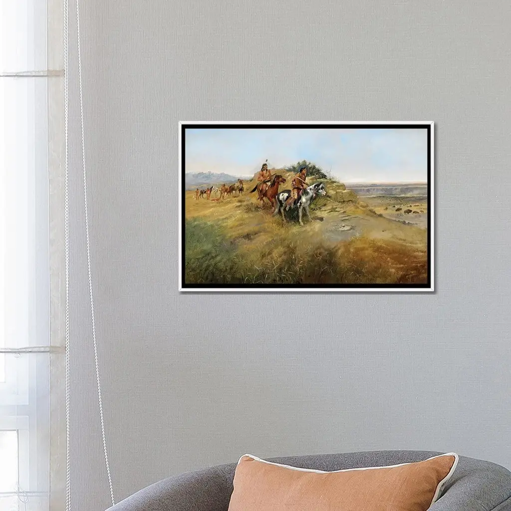 Icanvas "Buffalo Hunt, 1891" By Charles Marion Russell Framed Canvas Print - Gold - 26x40