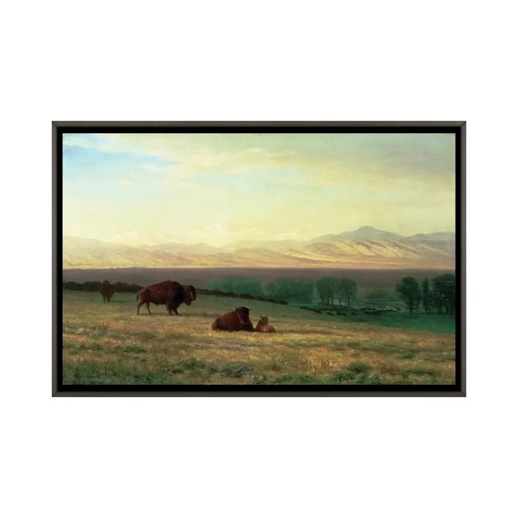 Icanvas "Buffalo On The Plains, C.1890 " By Albert Bierstadt Framed - Ebony - 26x40