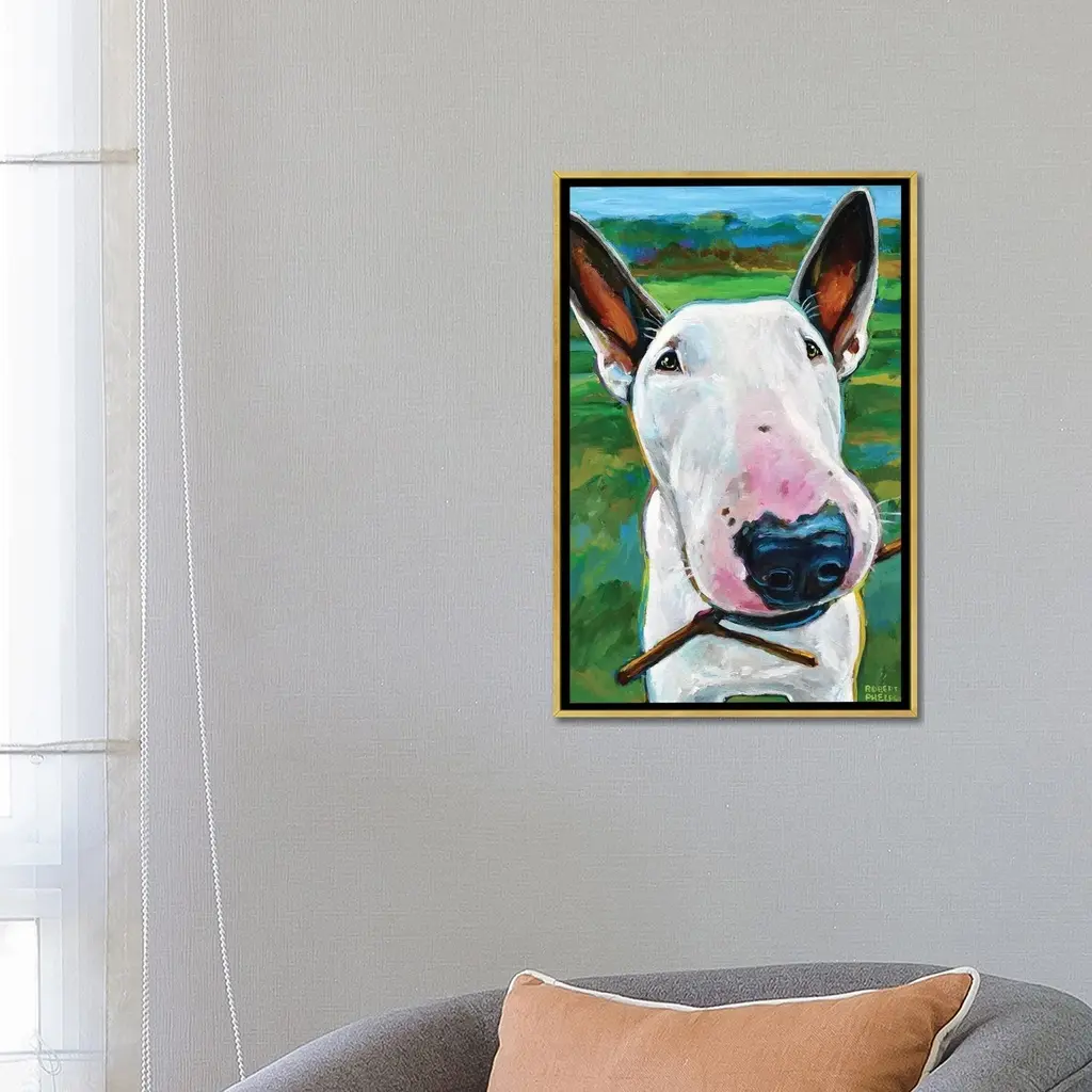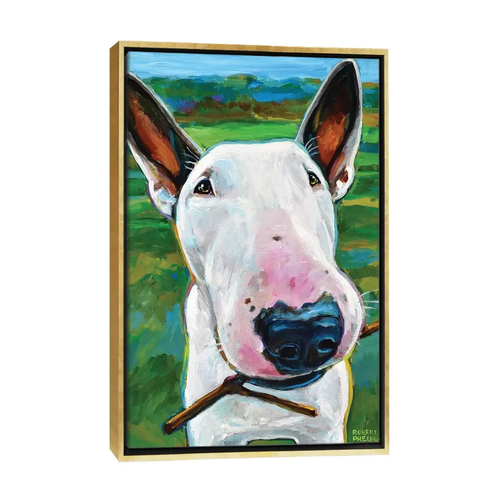 Icanvas "Bull Terrier With Stick" By Robert Phelps Framed Canvas Print - Gold - 40x26