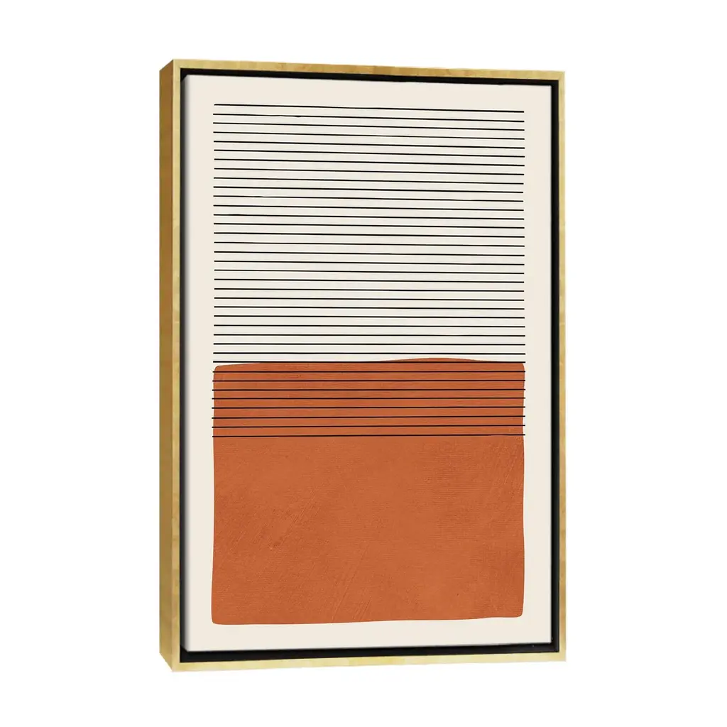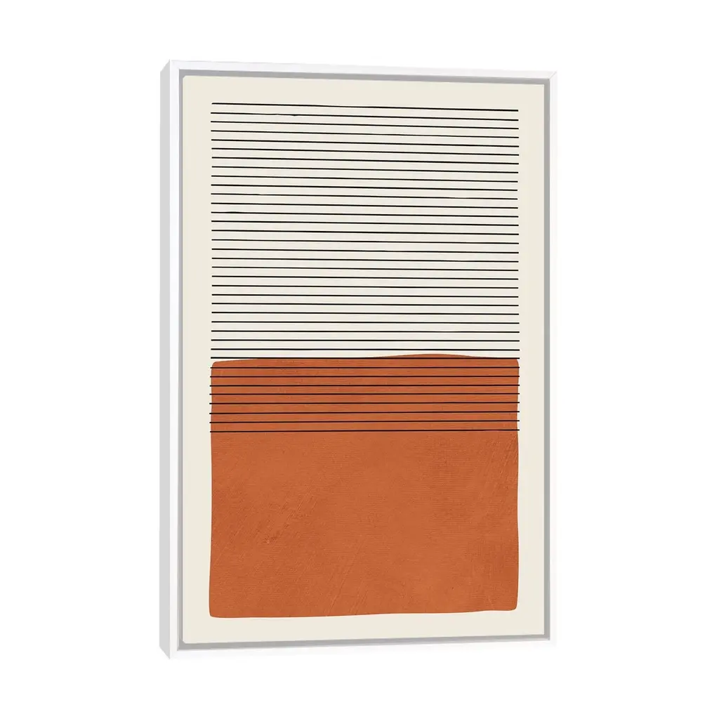 Icanvas "Burnt Orange Black Lines" By Emcdesignlab Framed Canvas Print - White - 48x32