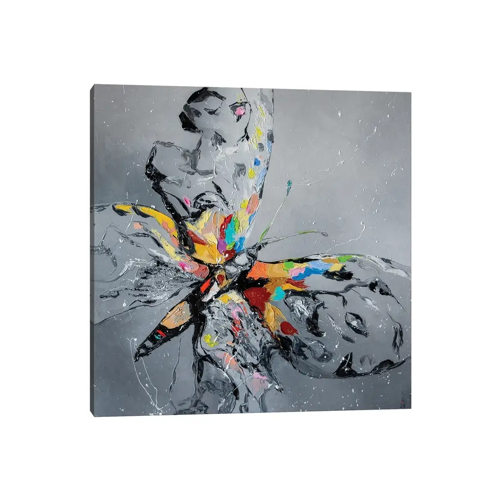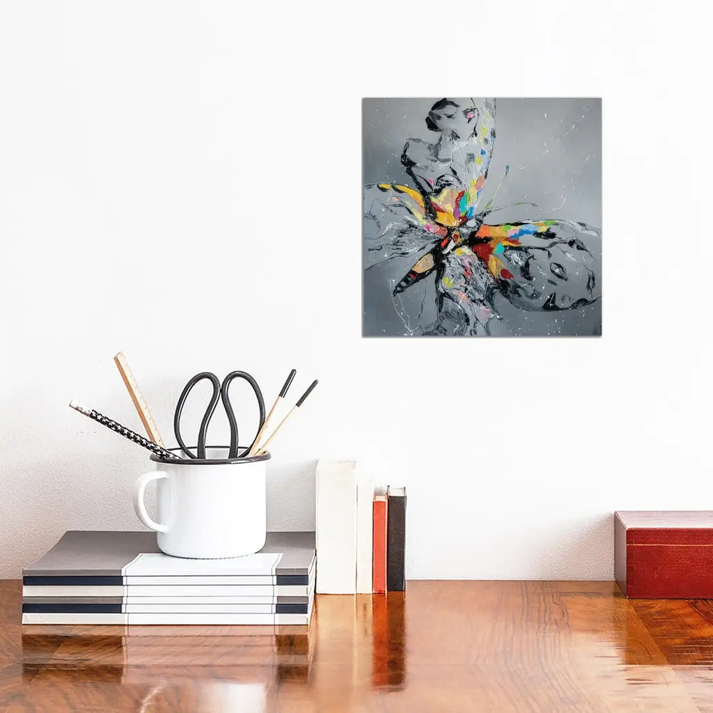 Icanvas "Butterfly On Grey" By Kuptsovaart Canvas Print - 12x12x0.75