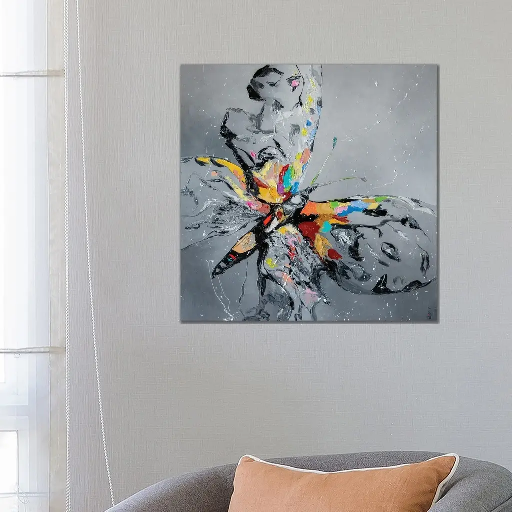 Icanvas "Butterfly On Grey" By Kuptsovaart Canvas Print - 12x12x1.5