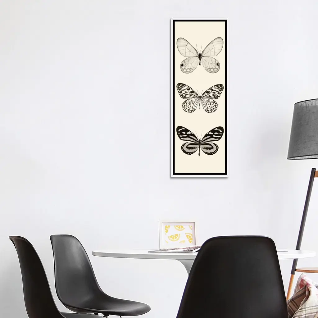 Icanvas "Butterfly Panel Ii In B&w" By Debra Van Swearingen Framed Canvas Print - 48x16 - White
