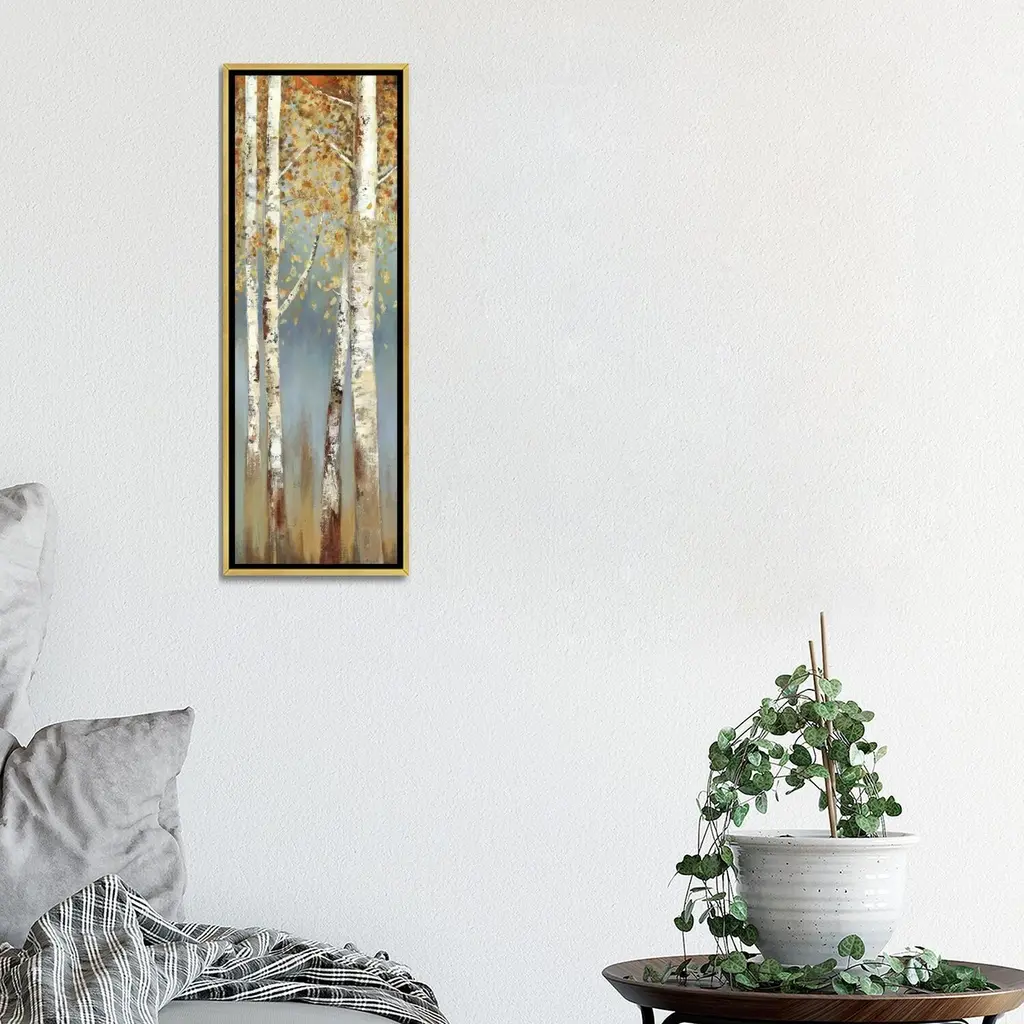 Icanvas "Butterscotch Birch Trees I" By Allison Pearce Framed Canvas Print - 36x12 - Gold