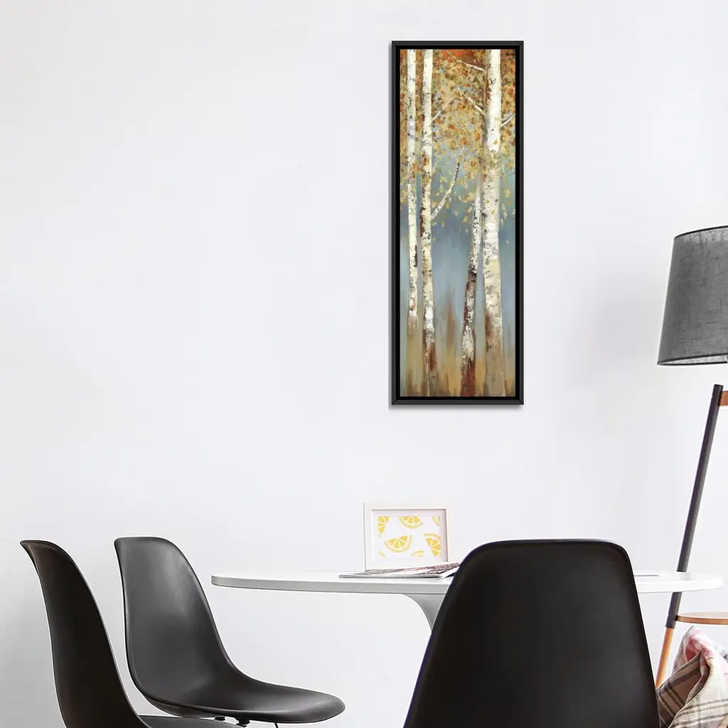 Icanvas "Butterscotch Birch Trees I" By Allison Pearce Framed Canvas Print - 48x16 - Black