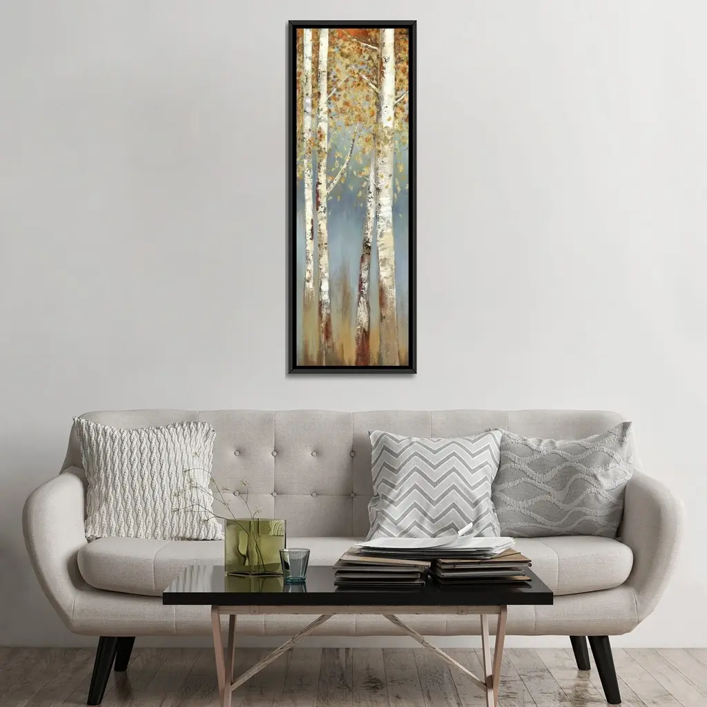 Icanvas "Butterscotch Birch Trees I" By Allison Pearce Framed Canvas Print - 60x20 - Black