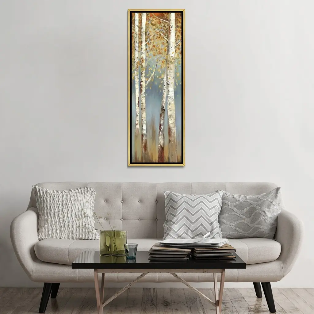 Icanvas "Butterscotch Birch Trees I" By Allison Pearce Framed Canvas Print - 60x20 - Gold