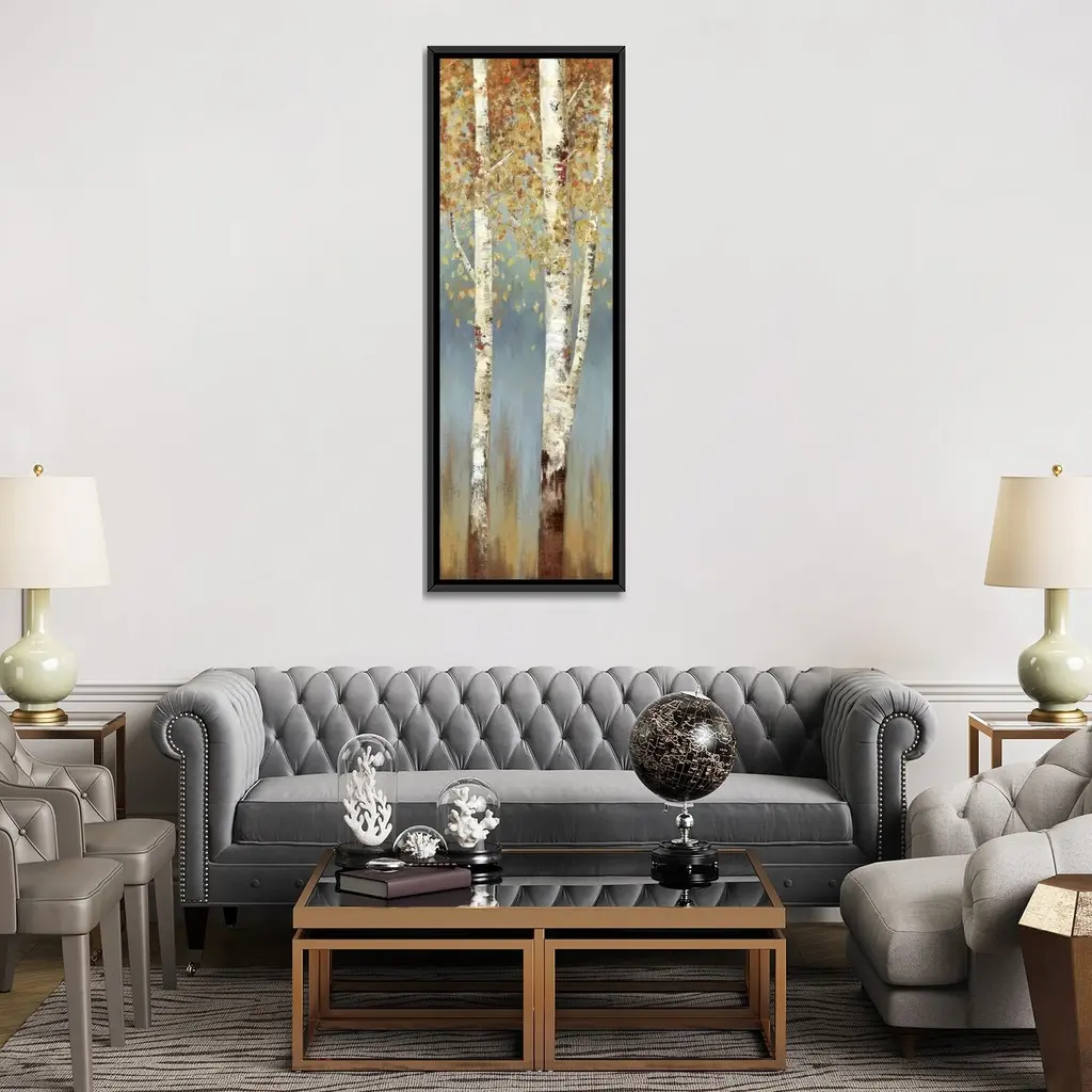 Icanvas "Butterscotch Birch Trees Ii" By Allison Pearce Framed Canvas Print - 72x24 - Black