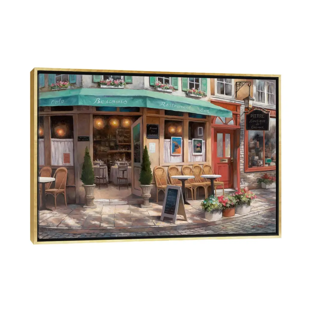 Icanvas "Cafe Beauchons" By T.c. Chiu Framed Canvas Print - Gold - 18x26