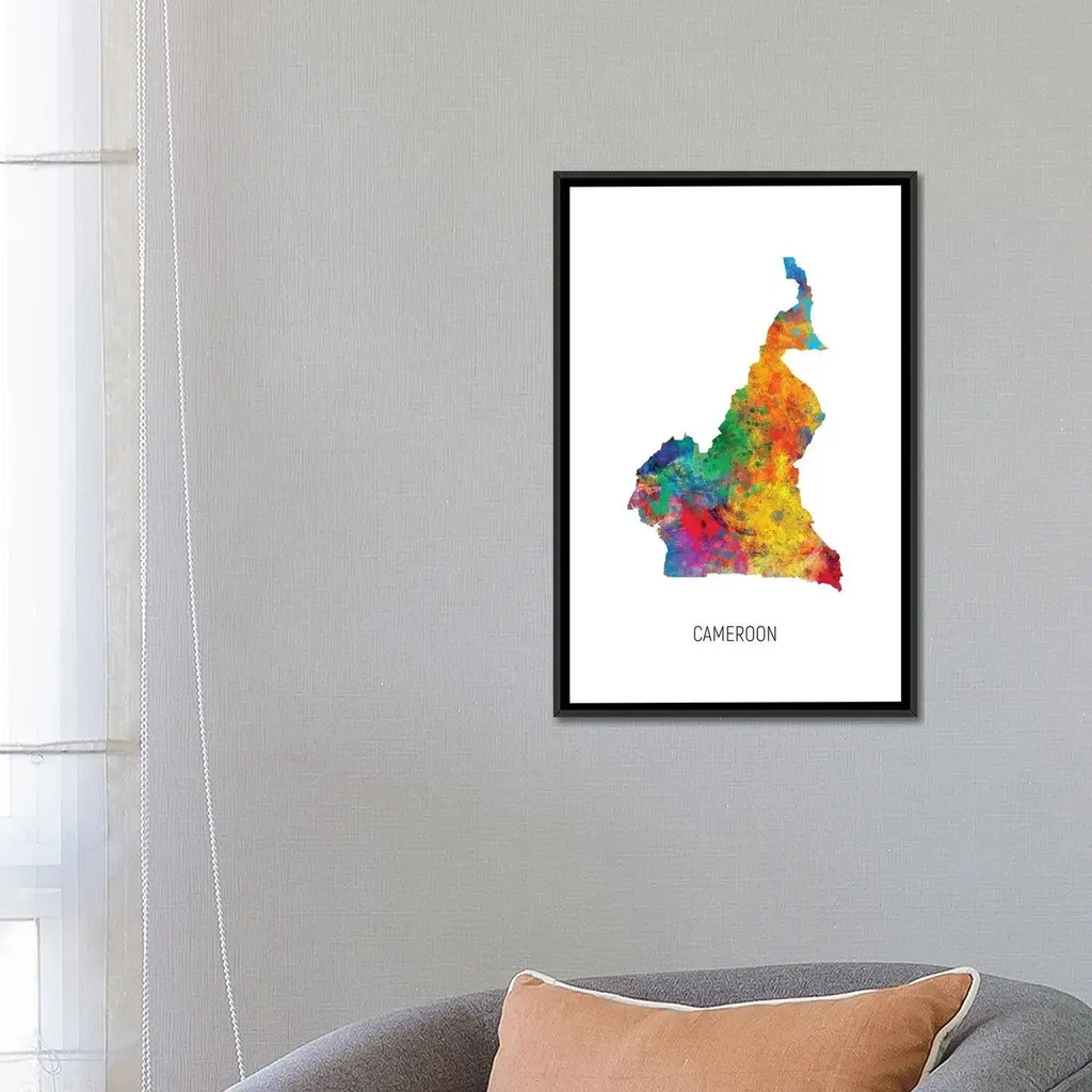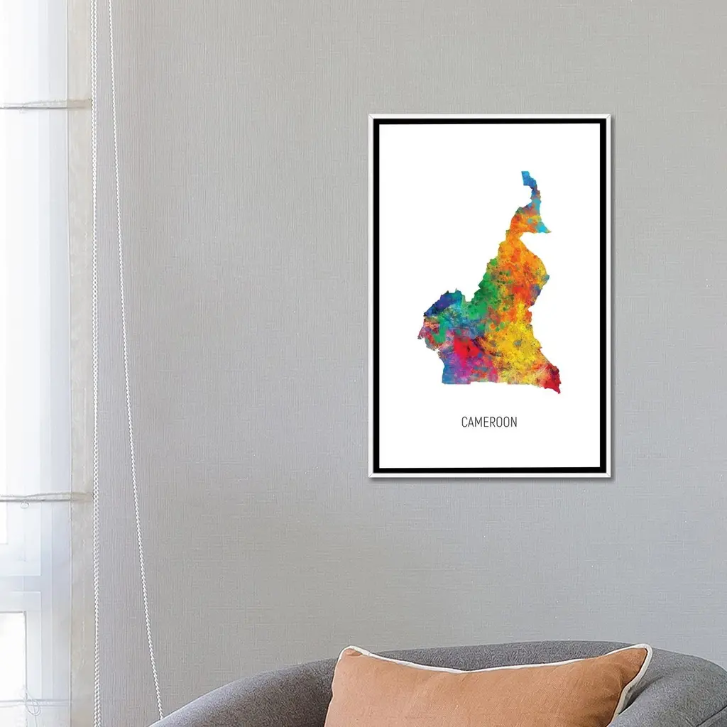 Icanvas "Cameroon Map" By Michael Tompsett Framed Canvas Print - Gold - 26x18