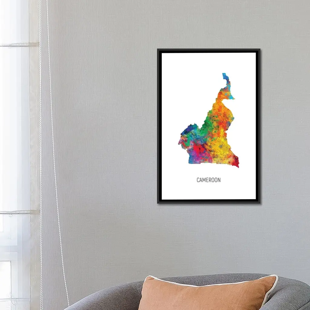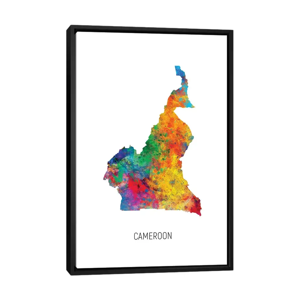 Icanvas "Cameroon Map" By Michael Tompsett Framed Canvas Print - Gold - 40x26