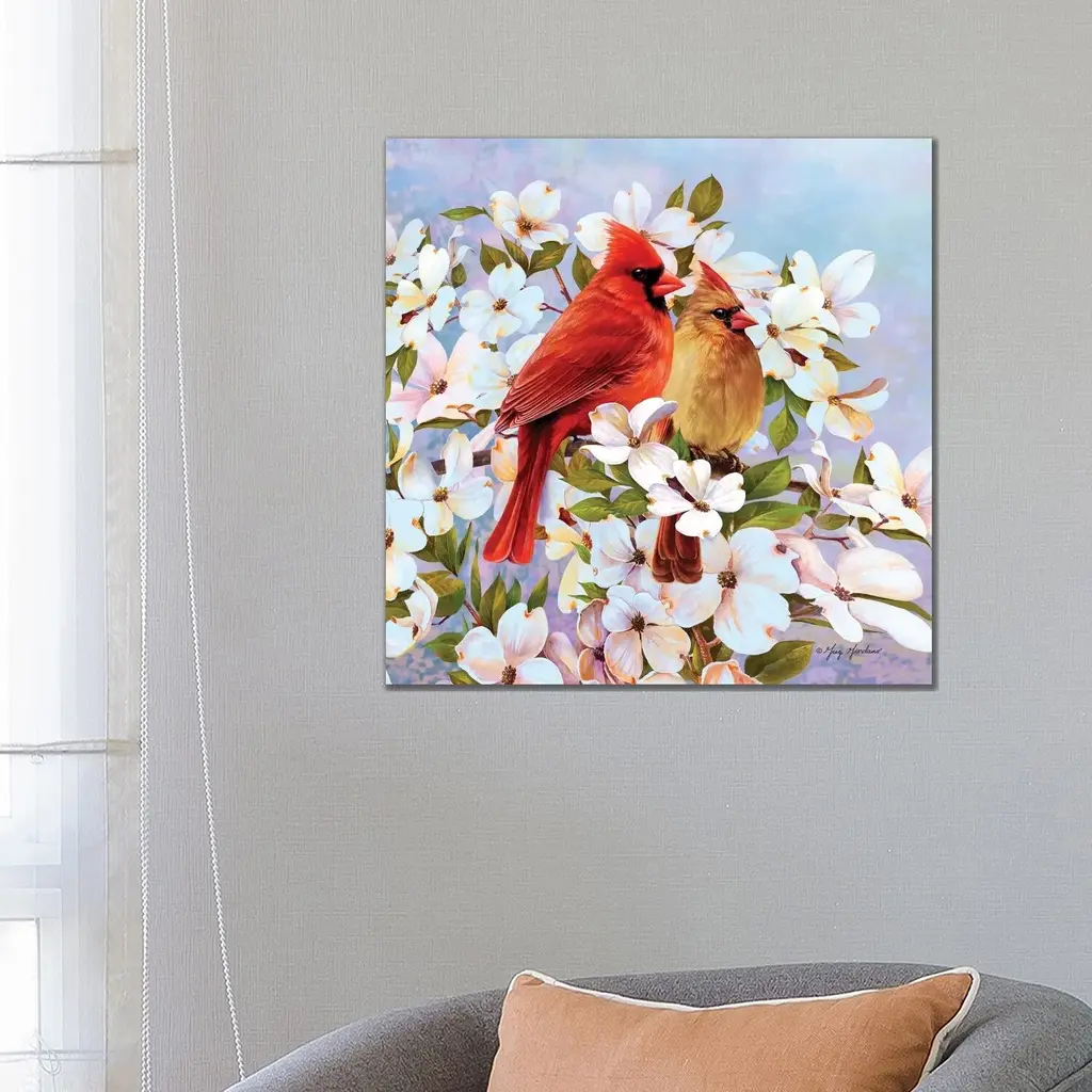 Icanvas "Cardinal Pair & Dogwoods" By Greg & Company Canvas Print - 12x12x0.75