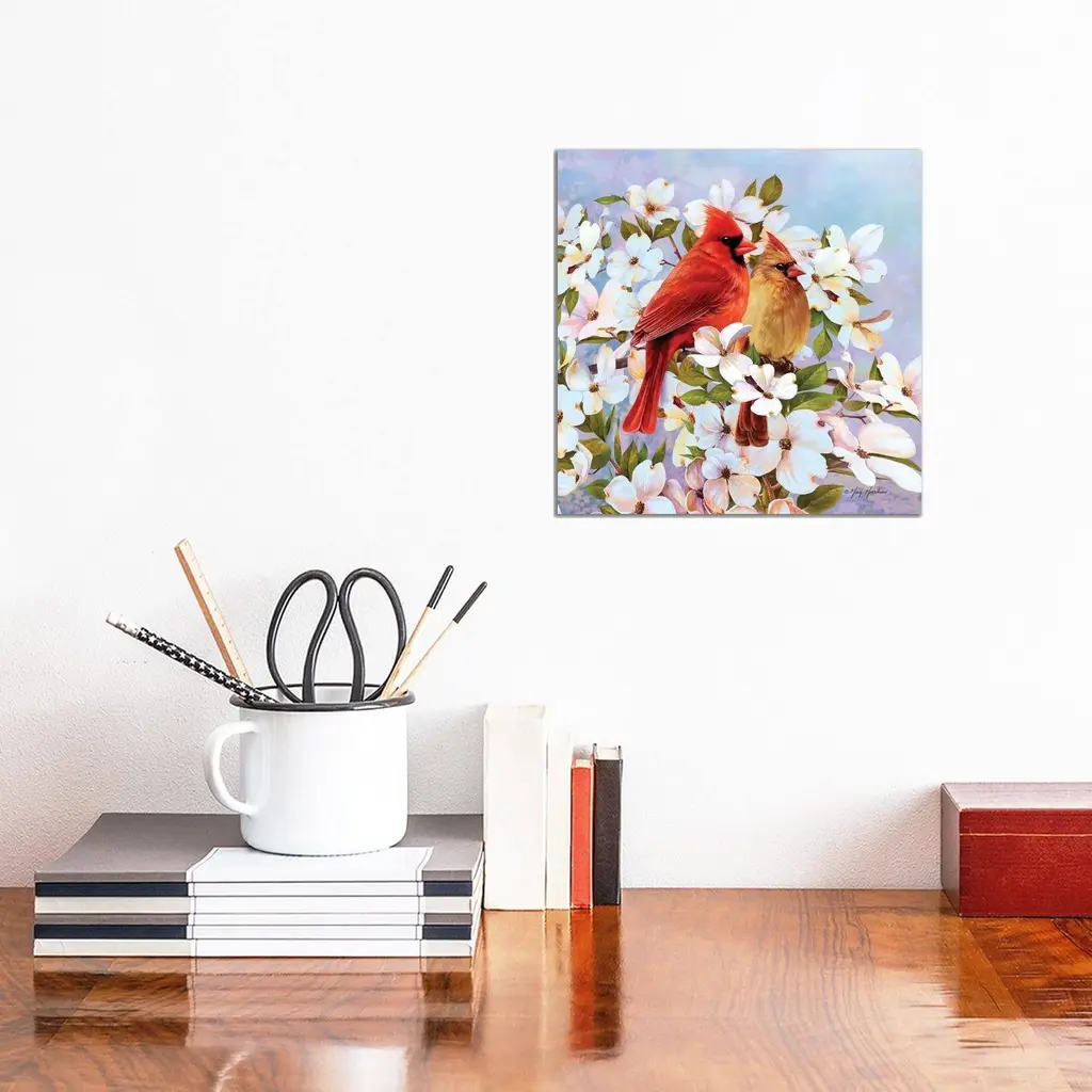 Icanvas "Cardinal Pair & Dogwoods" By Greg & Company Canvas Print - 12x12x1.5