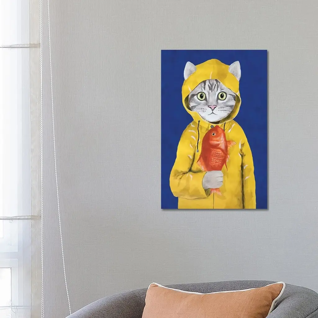 Icanvas "Cat With Fish" By Coco De Paris Canvas Print - 12x8x0.75